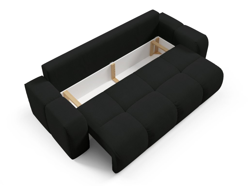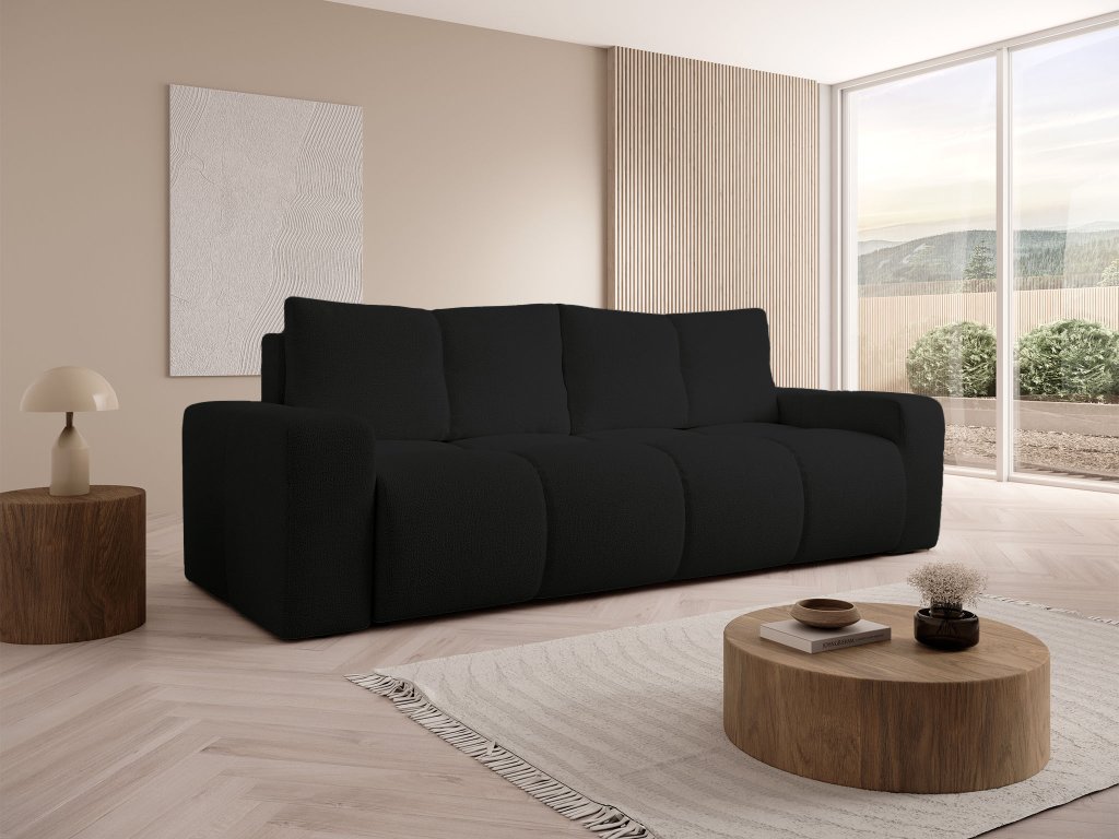 A fekete szövettel kárpitozot SOHO ágyazható kanap minden elegáns nappali dísze lesz. Karakteres kartámlái és gyönyörű steppelése különleges stílust kölcsönöznek neki. A puha háttámlaként funkcionáló párnák és a kényelmes ülőfelület garantálják a pihentető élményt. Az ülőgarnitúra gyönyörű Curio szövettel kárpitozott, amely nemcsak kellemes tapintású és elegáns megjelenésű, de könnyen karban is tartható. A beépített DL mechanizmusnak köszönhetően a steppelt kanapé könnyedén egy 149x200 cm vendégággyá alakítható, amely ideális a vendégek érkezésekor vagy az esti lazításhoz. Az ülőrész alatti ágyneműtartó tárolóhely tökéletes az ágynemű vagy a szezonális ruhák tárolására.
