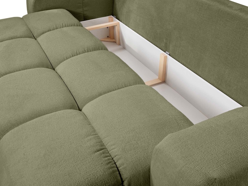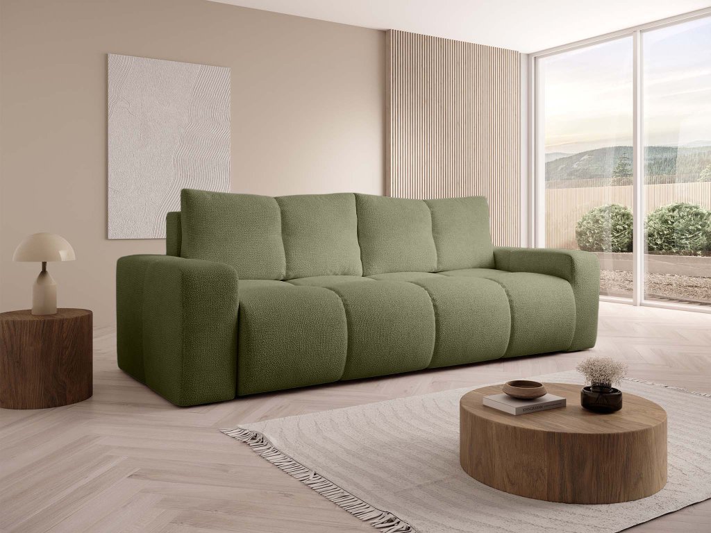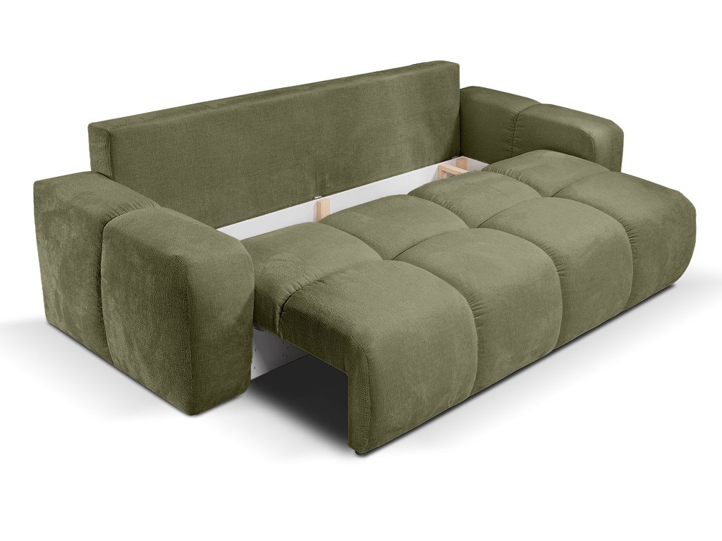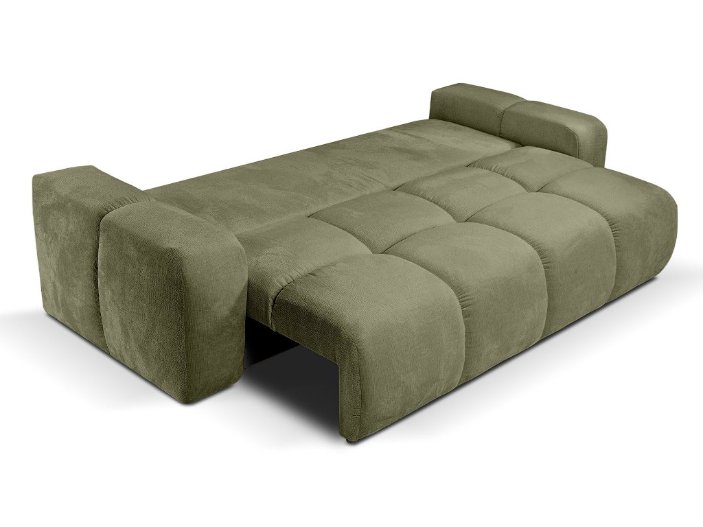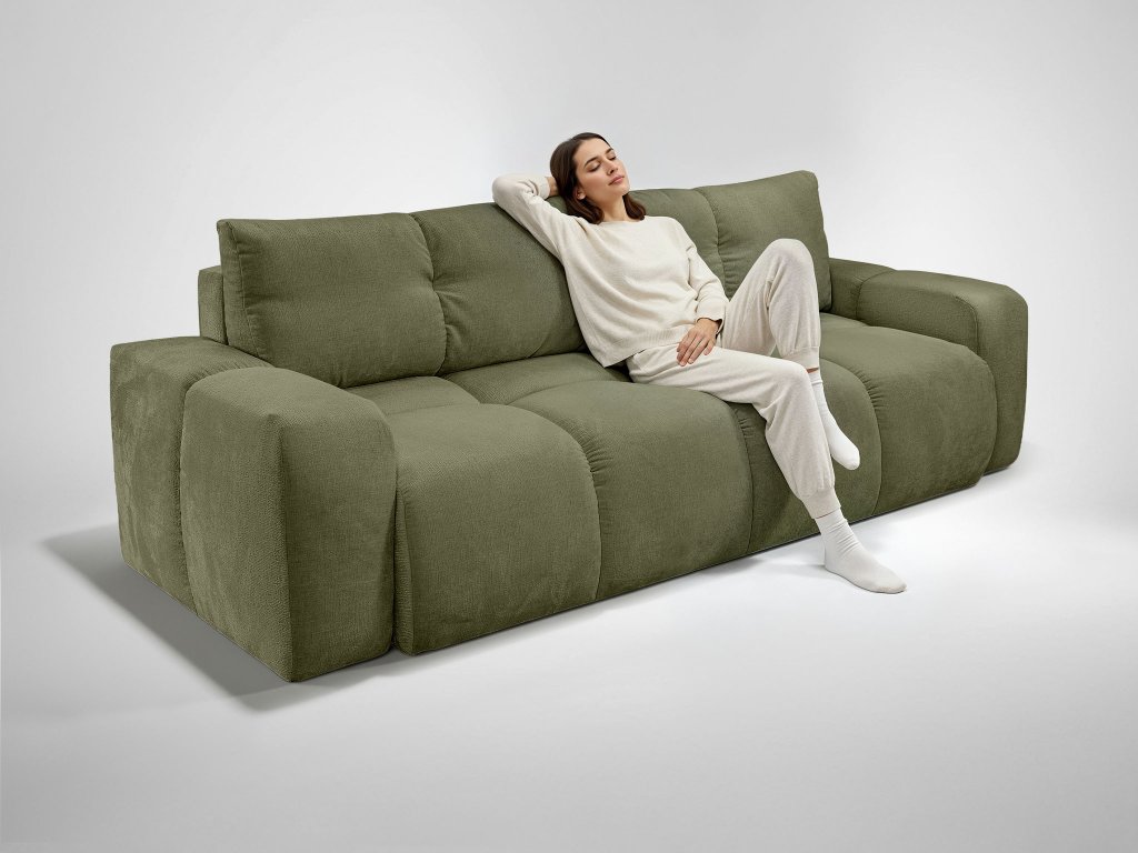 A természet inspirálta ezt a gyönyörű olivazöld színű modernSOHO kanapéágyat. Karakteres kartámlái és gyönyörű steppelése különleges stílust kölcsönöznek neki. A puha háttámlaként funkcionáló párnák és a kényelmes ülőfelület garantálják a pihentető élményt. A szabadon mozgatható párnák lehetővé teszik, hogy mindenki a saját igényeinek megfelelően állítsa be a háttámlát. A beépített DL mechanizmusnak köszönhetően a steppelt kanapé könnyedén egy 149x200 cm méretű vendégággyá alakítható, amely ideális a vendégek érkezésekor vagy az esti lazításhoz. Az ülőrész alatti ágyneműtartó tárolóhely tökéletes az ágynemű vagy a szezonális ruhák tárolására.