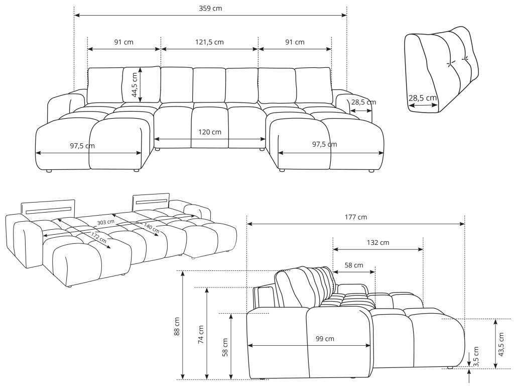 - Méret (HoxMaxSzé): 359 x 88 x 177 cm