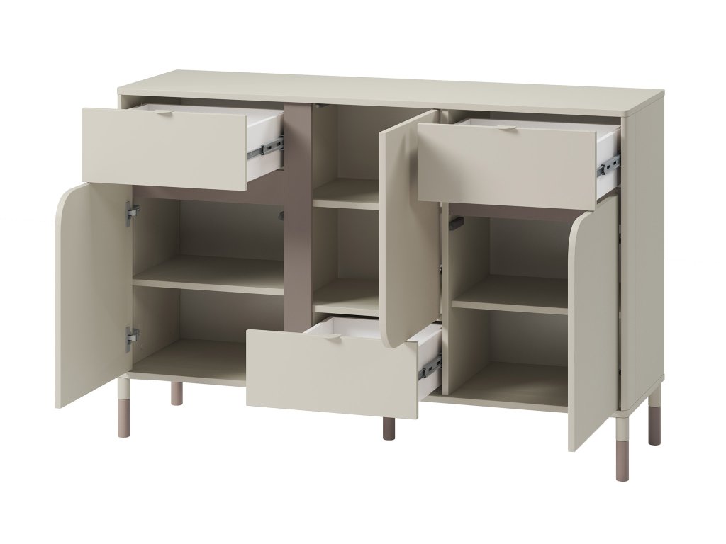 A SOPHIE komód az elegáns dizájn és a praktikum tökéletes kombinációja, amely bármely helyiségben megállja a helyét. Modern kialakítása nemcsak stílusos megjelenést garantál, de bőséges tárolóhelyet is biztosít a dolgok elpakolásához. Ez a fából készült komód három tágas fiókkal és három ajtós kis szekrénnyel rendelkezik, amelyek ideálisak a ruhák, könyvek, dekorációk vagy egyéb kiegészítők tárolására.