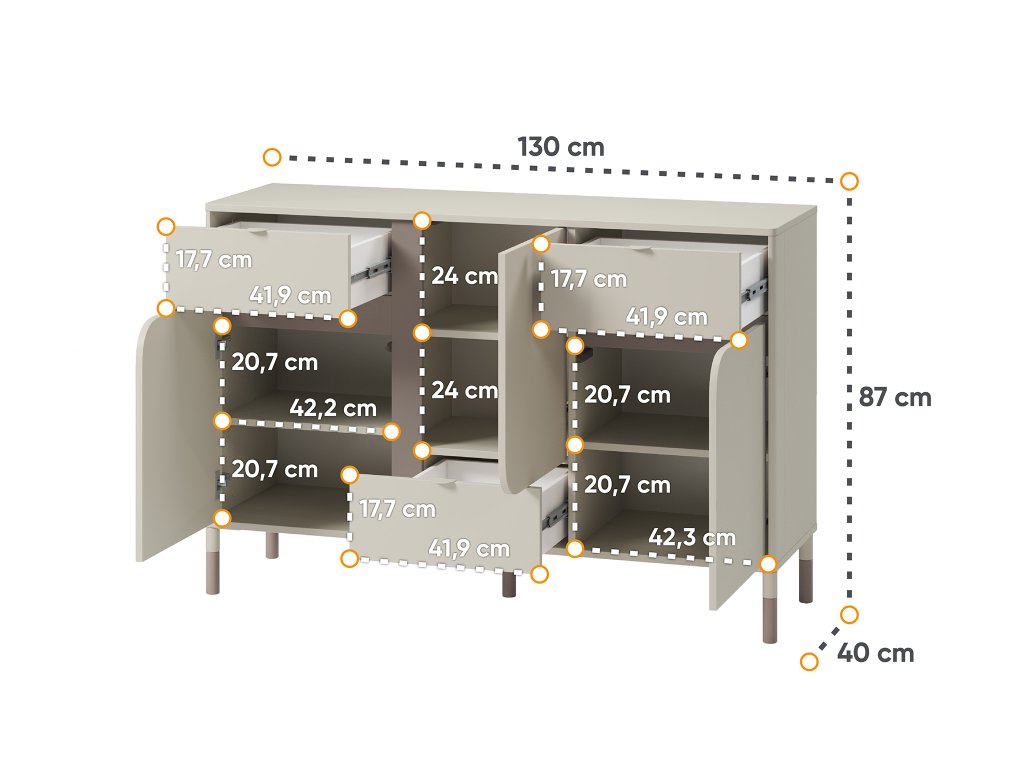 - Anyaga: 16 mm laminált forgácslap / ABS élzárás / fém fogantyúk