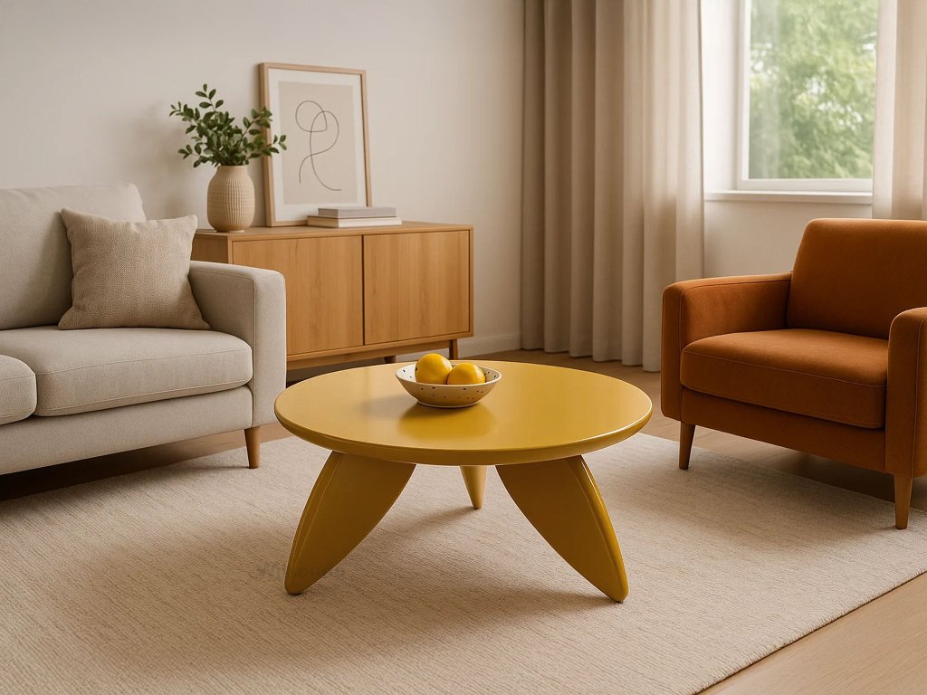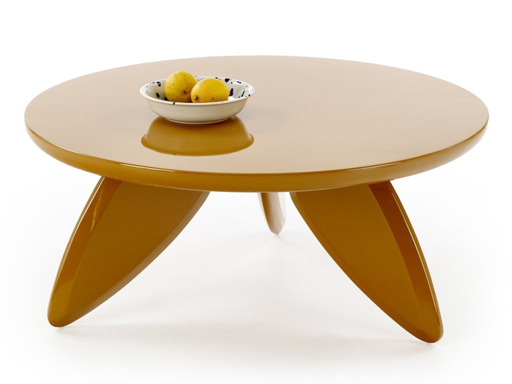Nem mindennapi kialakítással rendelkező és gyönyörű mustársárga színben készült kerek SORAYA 2 dohányzóasztal. Különleges lábaival nyűgöz majd le mindenkit. Kiváló minőségű magasfényűre lakkozott MDF bútorlapból készült. Az asztal elegáns, kifinomult és időtálló hatást kelt. Kerek formája és egyedi kialakítású lábai figyelemfelkeltő és harmonikus összhatást eredményeznek. A praktikus 36 cm-es magassága ideális dohányzóasztallá teszi a nappaliba. Sima felülete könnyen tisztán tartható és kiválóan alkalmas vendégek érkezésekor a szendvicsek és üdítők elhelyezésére. Stabil szerkezete hosszú élettartamot és megbízhatóságot biztosít a mindennapi használat során. Szokatlan japán stílusával és karakteres kék színével frissességet és üdeséget kölcsönöz majd otthonának.