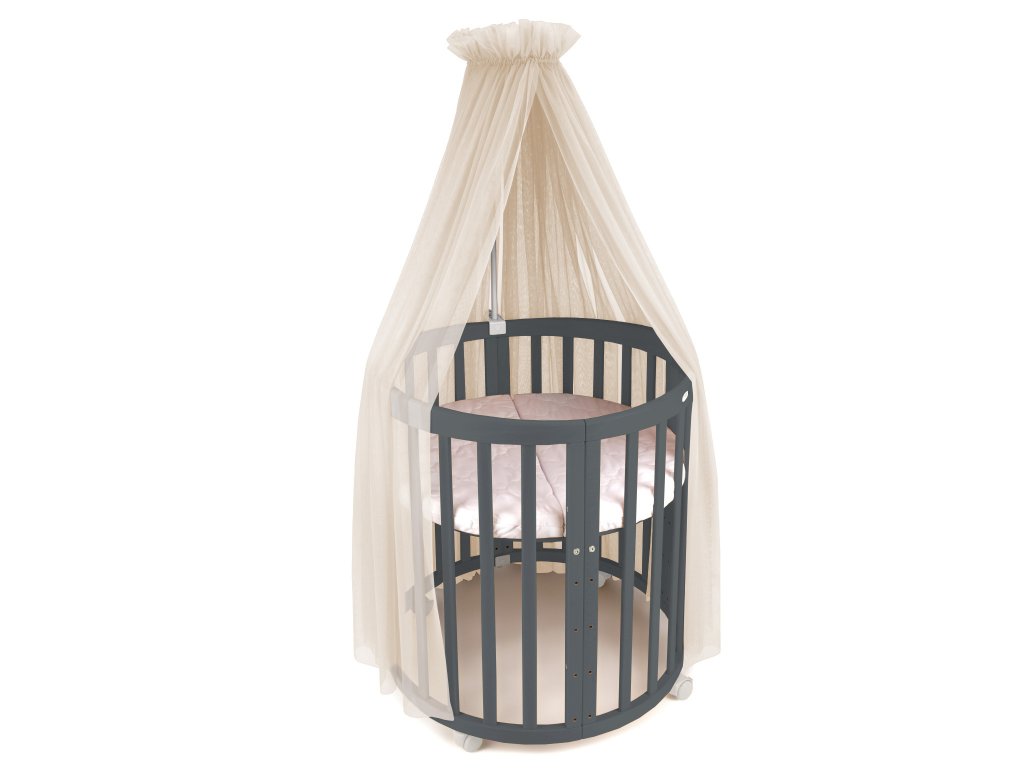 Grafitszürke színben készült 7az1-ben növekvő kiságy gyönyörű Taupe színű tüll baldachinnal elérhető áron.