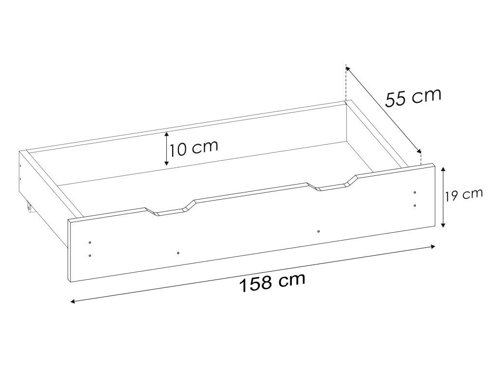 - Ágyneműtartó mérete (SzéxMaxMé): 158 x 19 x 55 cm