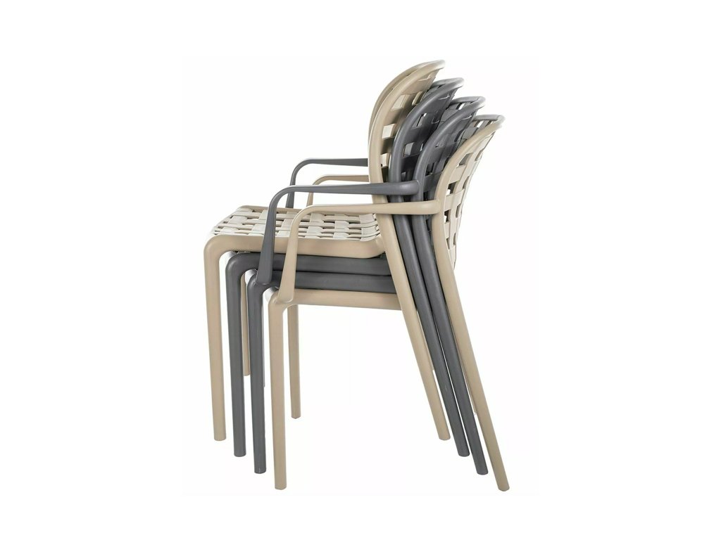 A STRIP szürke műanyag kerti szék kültérbe és beltérbe is egyaránt jó választást jelent. A szék megállja a helyét kisebb balkonokon, de nagyobb kertekben is. Minőségi és szilád műanyagból készül, amely ellenálló az időjárási viszontagságokkal szemben. A műanyag székek nagy előnye, hogy alacsony a súlyuk, így könnyen áthelyezhetők. A raktározás is igen könnyű, ugyanis egy rakásolható kerti székről van szó. Így a szezon végeztével könnyebben elférnek a garázsban vagy a pincében.