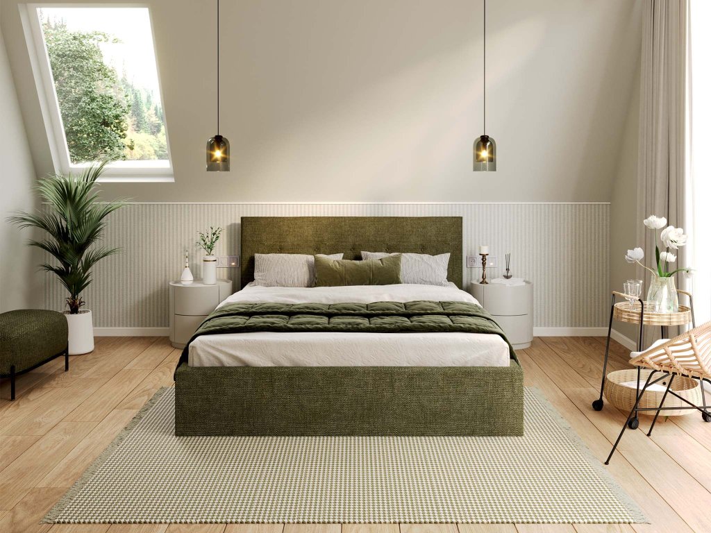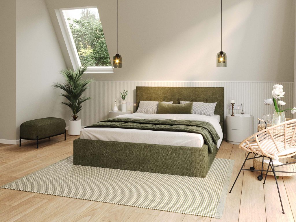 A STULY kárpitozott franciaágy a modern dizájnt, a funkcionalitást és a kényelmet ötvözi. A nyugtató hatású és jó közérzetet biztosító zöld szín élénkíti és felfrissíti a hálószobát. A bútor alapanyaga minőségi farostlemez (MDF), amely nagyfokú szilárdsággal rendelkezik. A hosszú élettartamra tervezett kárpitozott ágy Ottawa bútorszövete rendkívül ellenálló a kopással szemben, vízlepergető és könnyű karbantartani. A kárpitozott ágyvégen díszgombok találhatók, amelyek növelik az esztétikai élményt. A STULY kétszemélyes ággyal berendezett hálószoba ideális megoldást jelent azoknak, akik a természetet, a békét és az egyensúlyt szeretnék a belső térben szimbolizálni.