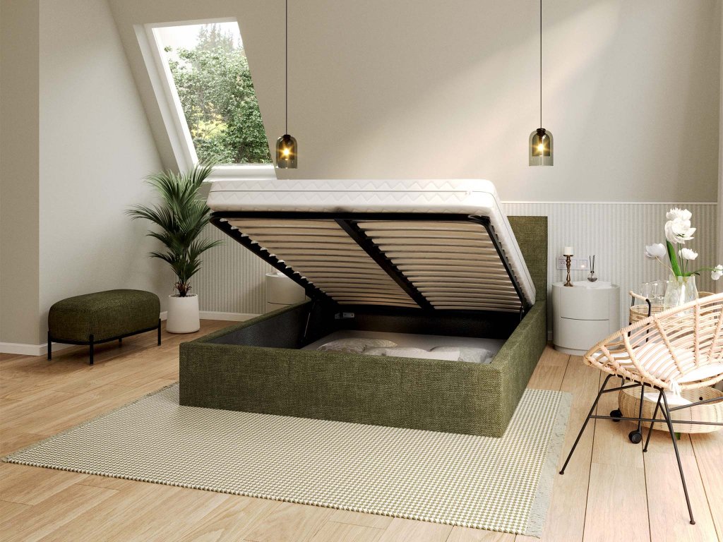 STULY kárpitozott franciaágy ágyneműtartóval - zöld