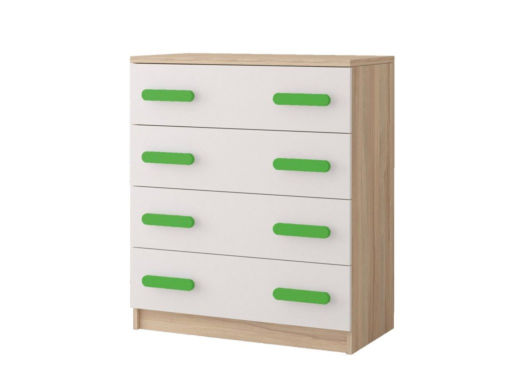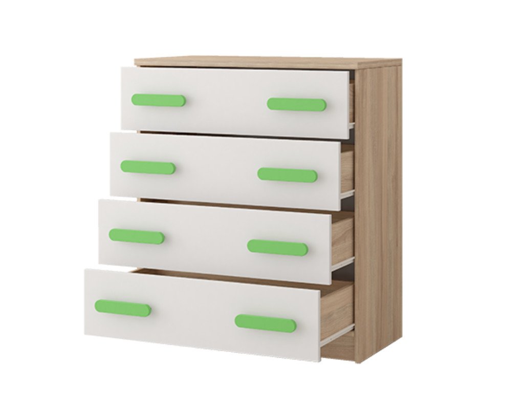 A komód egyik gyerek- vagy tanulószobából sem hiányozhat. A komód praktikus bútordarab a ruhák vagy egyéb fontos dolgok tárolására. A bútor alapszíne a sonoma tölgy. Színe a gyerekszobának tiszta, egyszerű, nyugodt hatását kelti. A Svend kollekció bútora időtálló dizájnú, hosszú éveken át gyermekei szolgálatában. A bútorhoz nem tartoznak fogantyúk. A fogantyúkat szükséges hozzávásárolni (8db). A kiválasztott fogantyúk színe vidámmá és játékossá varázsolják a szobát. A gyerekkomód színes fogantyúi illenek a SVEND kollekció többi bútorjához, és tökéletes kiegészítője a kollekciónak. A SVEND kollekció többi bútordarabjának megvételével stílusos és modern gyerekszobát alakíthat ki gyermeke számára.