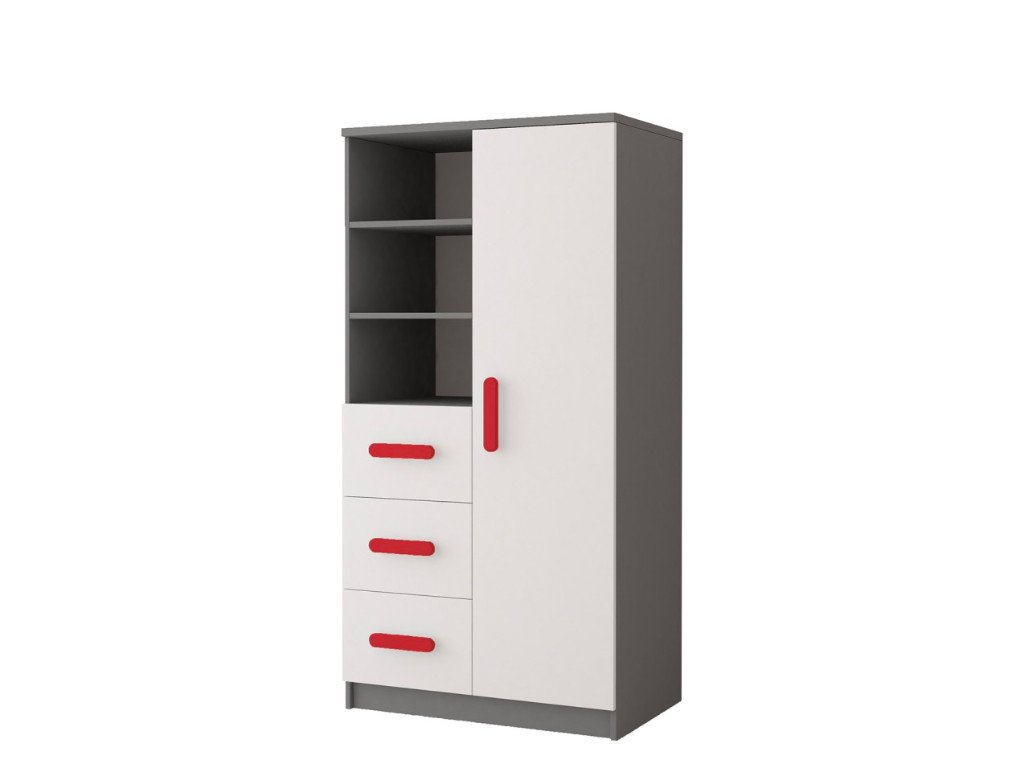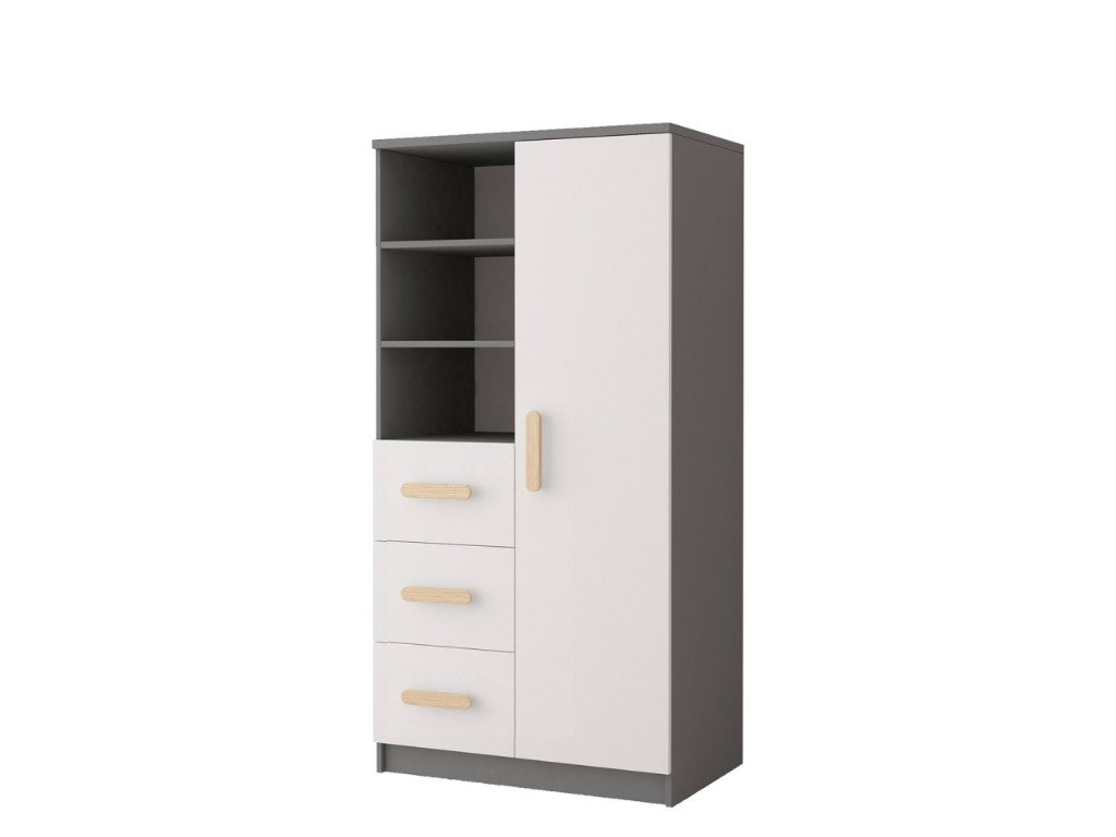 A Svend kollekció polcos szekrénye rendkívül praktikus. Három nyitott polccal, három fiókkal és négy ajtók mögötti tárolóhellyel rendelkezik. A fogantyúk nem részei a polcos szekrénynek. A fogantyúkat szükséges hozzávásárolni. Az Ön ízlésének megfelelő színű fogantyúkat választhat. Fa fogantyúk színe: piros, szürke, kék, zöld, lila, narancssárga, rózsaszín, sonoma tölgy (saját ízlés szerint). Ehhez a termékhez 4 db fogantyúra van szükség.