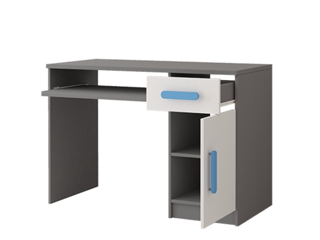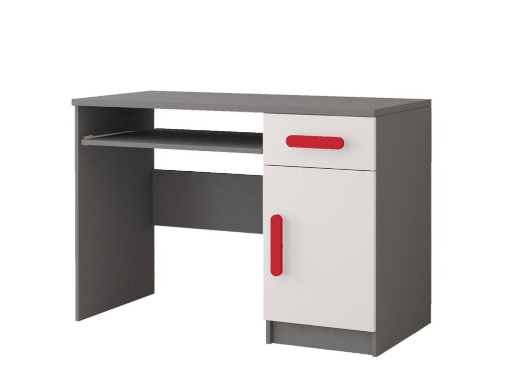 Az íróasztal egyajtós szekrénnyel, fiókkal és billentyűzettartó kihúzható deszkával rendelkezik, minden gyerekszobába tökéletesen illik. Az íróasztalhoz nem tartoznak fogantyúk. A fogantyúkat szükséges hozzávásárolni. Az Ön ízlésének megfelelő színű fogantyúkat választhat. Fogantyúk színe: piros, szürke, kék, zöld, lila, narancssárga, rózsaszín, sonoma tölgy (saját ízlés szerint). Ehhez a termékhez 2 db fogantyúra van szükség.