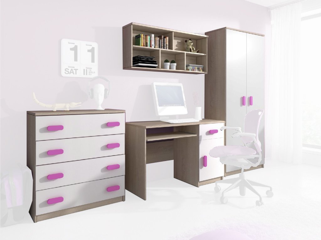 Olyan gyerekszoba bútort keres, mely együtt nő gyermekével? Ha igen, épp megtalálta. Időtálló dizájn és stílusosság jellemzi ezt a szép szekrénysort. Ez a bútorösszeállítás rózsaszín fogantyúkkal kiváló választás lányos szobába. A SVEND kollekció bútora együtt nő gyermekével.