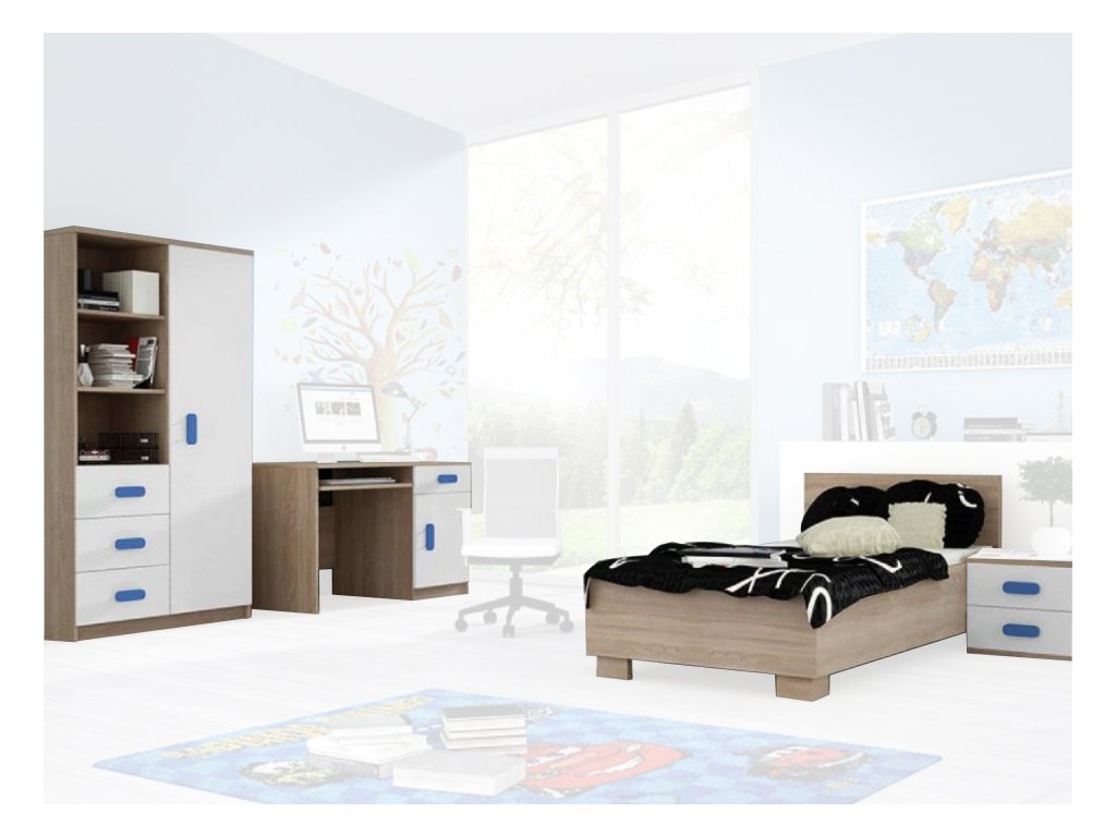 A gyerekszoba az a hely, ahol a gyerekek a legtöbb idejüket töltik. A gyerekek számára a gyerekszoba menedék, hálószoba, játszószoba és dolgozószoba egyben. Alakítson ki gyermeke számára egy olyan helyet, ahol kellemesen érzi magát, és vásárolja meg számára ezt az időtálló bútort a SVEND kollekcióból. A bútor alapszíne a sonoma tölgy és fehér, melyek a bútor gyengéd, tiszta és nyugodt hatását keltik. Ez a kombináció tökéletes választás minden fiús gyerekszobába.