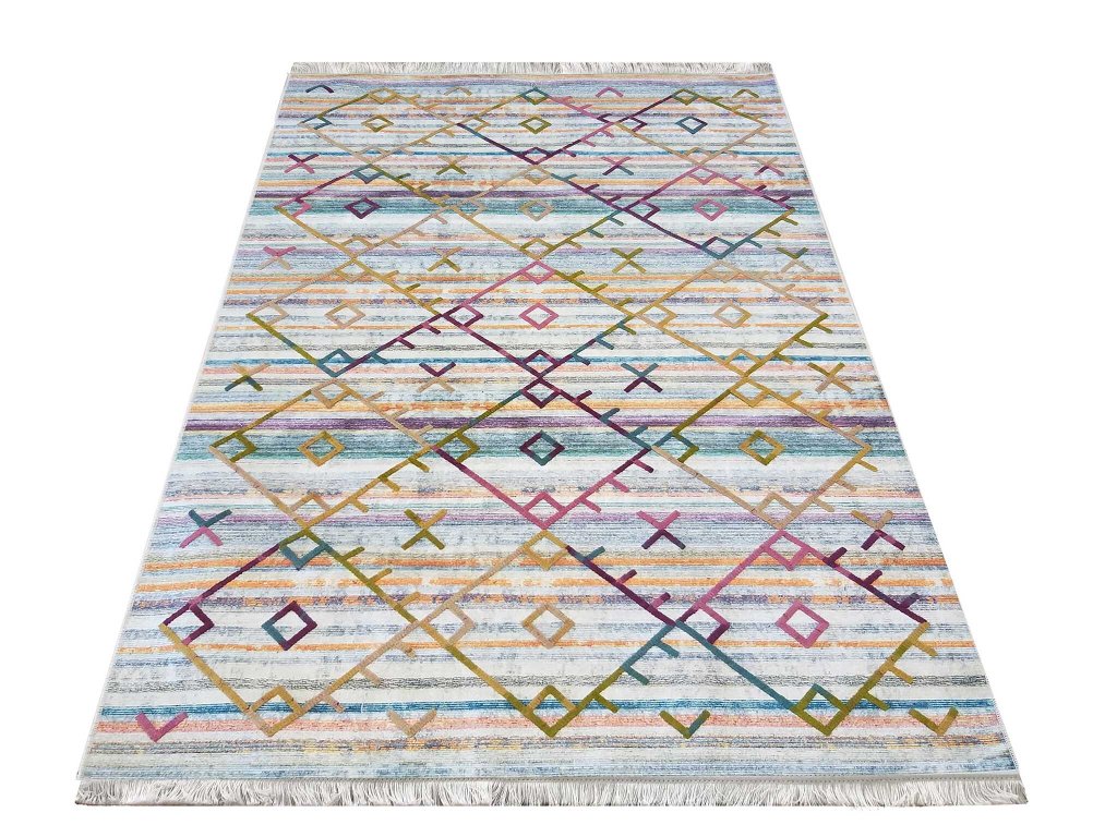 Egy igazán gyönyörű és színes szőnyeget keres, amely a színeivel feldob minden szobát? A modern mintás színes NAOS csúszásgátlós szőnyeg az, amit keres. Egyedi karaktert ad minden szobának, ahová elhelyezi. Tökéletes nappali, előszoba, hálószoba szőnyeg, de konyhai szőnyegként vagy kamaszok szobájában is megállja a helyét. A szőnyeg nem csak gyönyörű kinézettel rendelkezik, de igen ellenálló és praktikus is. Tökéletes választás a modern otthonokba. A szőnyeg nem csak egy szép dekorációs elem, de megvédi a padlót a karcolásoktól, sérülésektől és az idő előtti elhasználódástól. A maximális biztonság érdekében a szőnyeg speciális gumis csúszásgátlóval is el van látva. Ennek köszönhetően a szőnyeg nagyon stabil, hozzásimul a felülethez és nem kancsarodik fel a széle. A luxusos szürke szőnyeg 60 % pamutból és 40 % poliészterből készült. Mosógépben mosható 30 fokon.