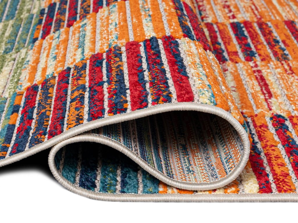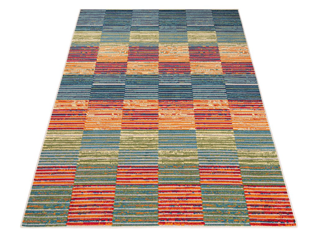 Színes mintás szőnyeg 1500 g/m2 súllyal és alacsony, 6 milliméteres szálmagassággal. A szőnyeg puha és rugalmas szálakból áll, amelyek ellenállóak a deformációval és a kikopással szemben. Az alacsony szálmagasságnak köszönhetően könnyen tisztán tartható. A színes szőnyeg feldob minden hálószobát, nappalit vagy gyerekszobát. Ugyanúgy megfelelő modern, mint klasszikus otthonokba.