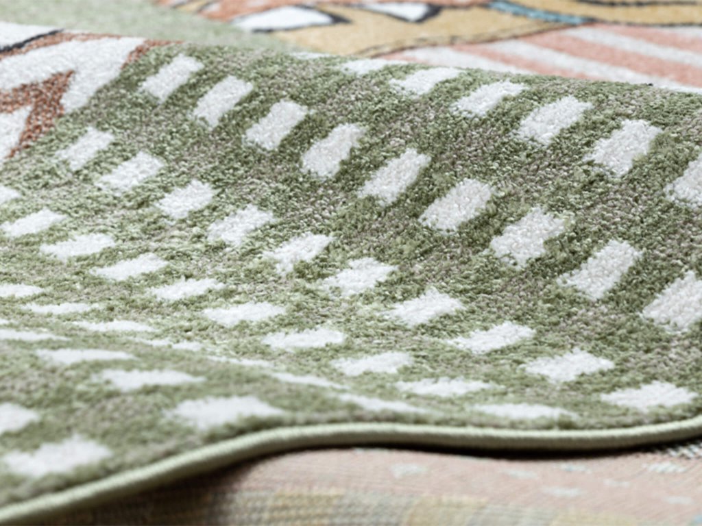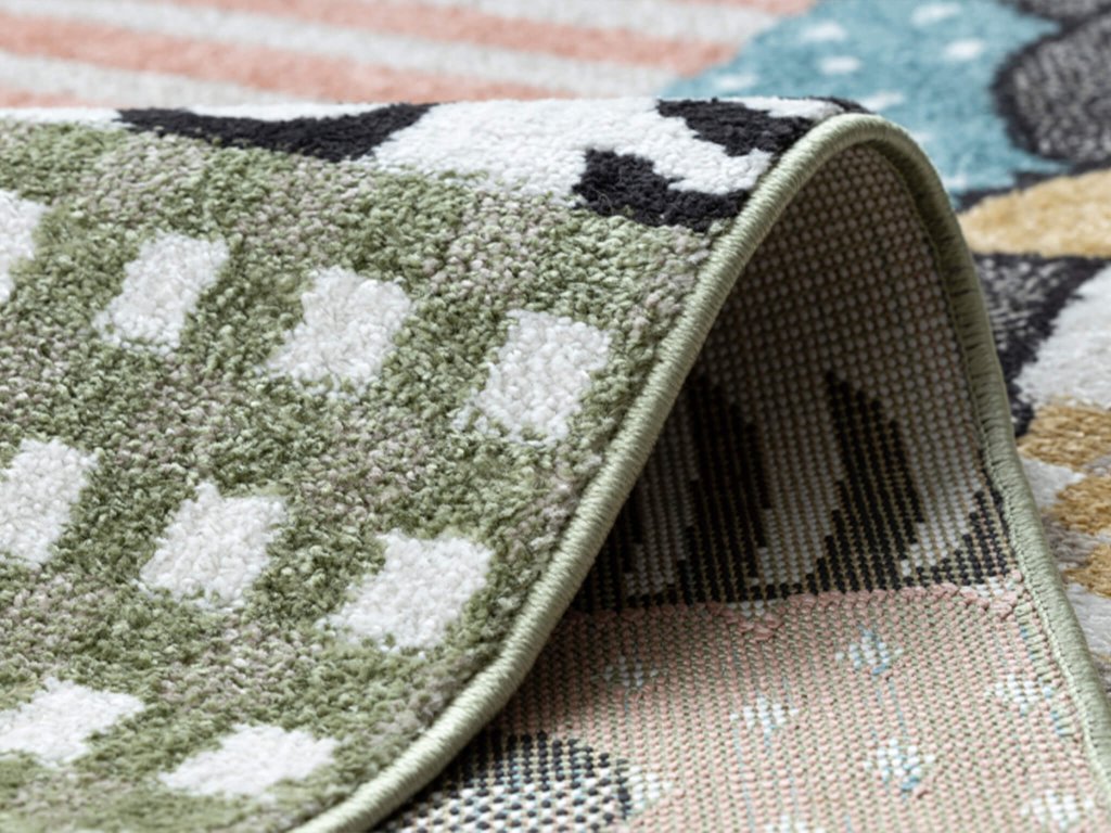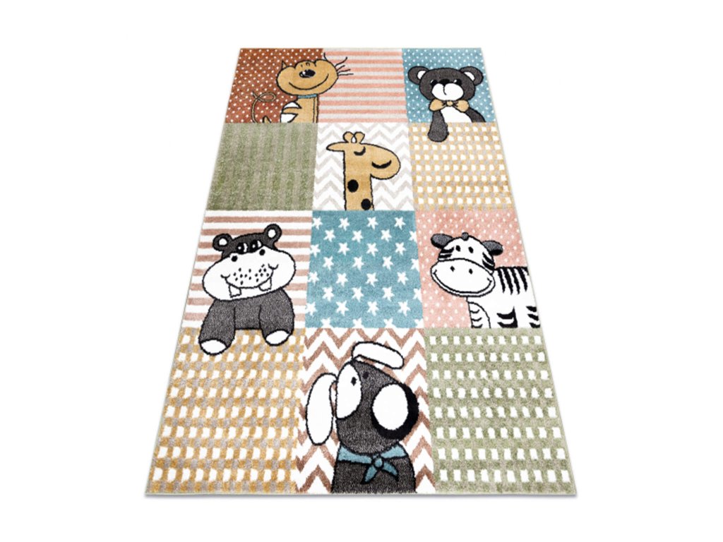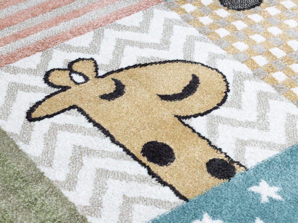 A kis állatokkal és színes mintákkal díszített gyönyörű gyerekszőnyeg a színeinek köszönhetően feldob minden gyerekszobát, legyen szó lányos vagy fiús gyerekszobáról. A puha szőnyegnek köszönhetően biztosítva lesz gyermeke kényelme. A szőnyeg Soft Frieze típusú szálakból áll 1800 g/m2 szálsűrűséggel és 13 mm szászálhosszúsággal. A szőnyeg puha polipropilén (PP) szálakból készül, amelyeknek rendkívüli a puhasága és a rugalmassága, főként a hőkezelésnek köszönhetően. Nem deformálódik és nagyon ellenálló a kikopással szemben. Ennél a fajta szőnyegnél nagy gondot fordítottak arra, hogy megfelelő legyen olyan gyerekeknek is, akik allergiától szenvednek. Több méretben is elérhető, hogy ki tudja választani az Önnek leginkább megfelelőt.