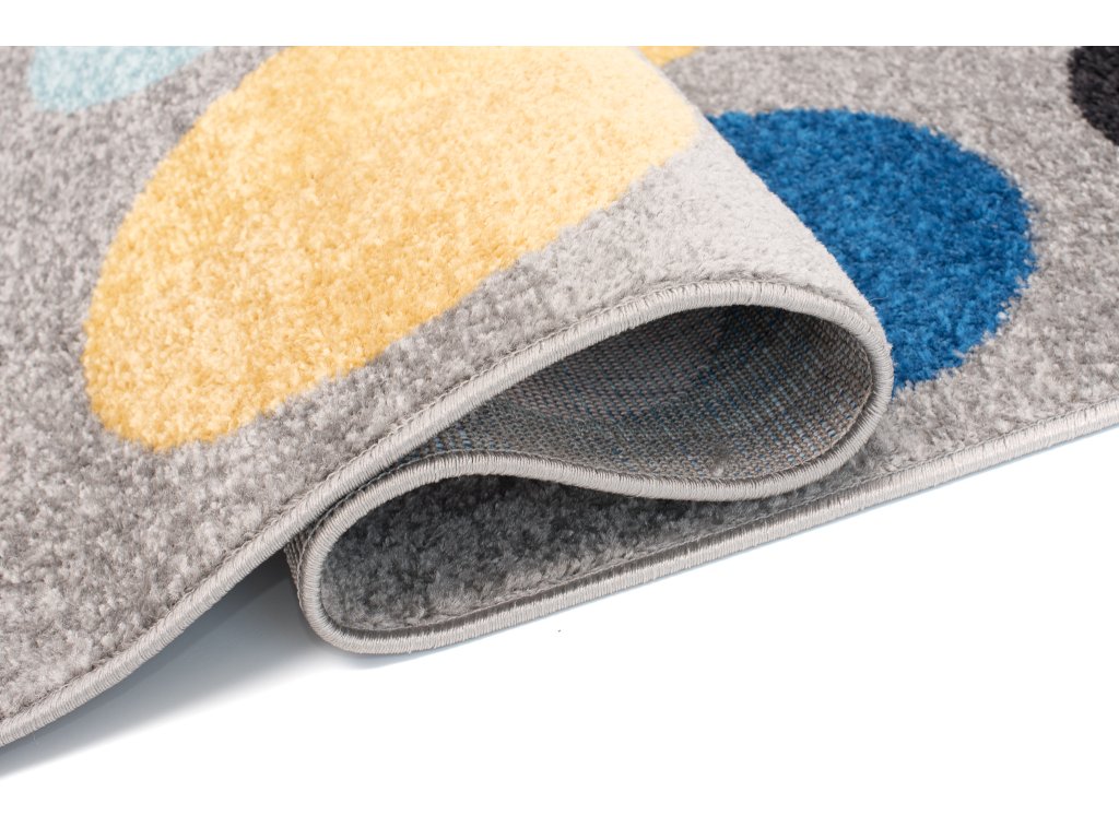 A LOLO gyönyörű és vidám pöttyös szőnyeg 1400g/m2 sűrűségű 8-9 milliméter hosszú szálakkal rendelkezik. A polipropilén szálak kiemelkedő puhaságúak és rugalmasságúak a hőmegmunkálásnak köszönhetően. A gyöngyházfényű textúrájának köszönhetően a szőtt szőnyegekre emlékeztet. A színes szőnyeg nem deformálódik és magas ellenálló képességgel rendelkezik a kikopással szemben. Amit biztosan értékelni fog az az egyszerű karbantartás és a rövid szálak. Több méretben is elérhető. A designjának köszönhetően tökéletes nappali, hálószoba vagy gyerekszoba szőnyeg lehet. Ugyanolyan jól néz ki a klasszikus, mint a modern otthonokban.