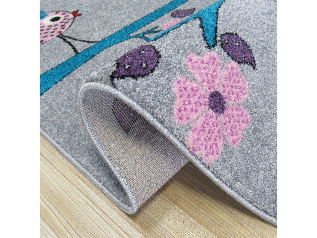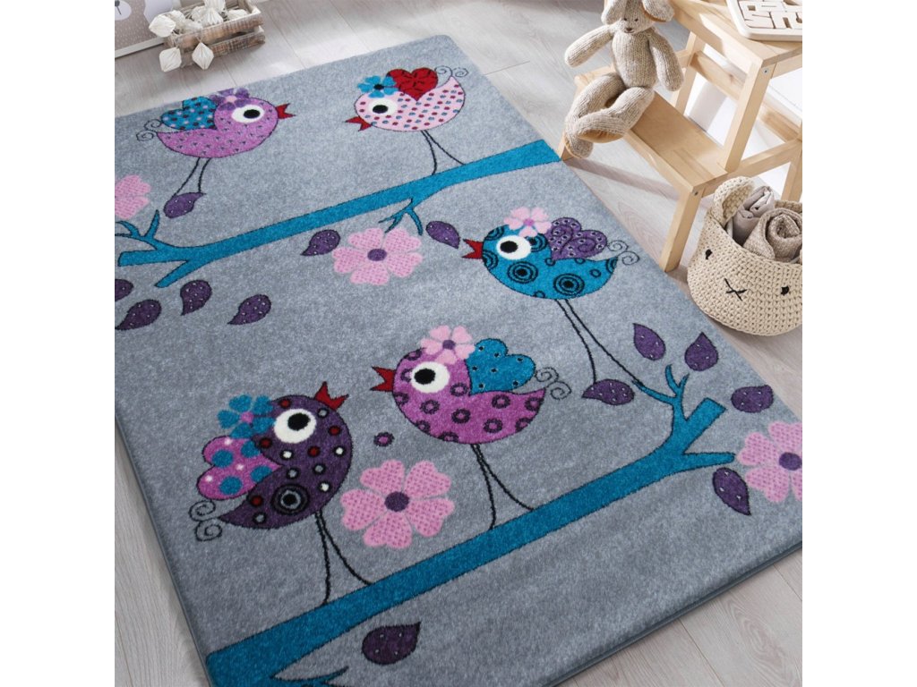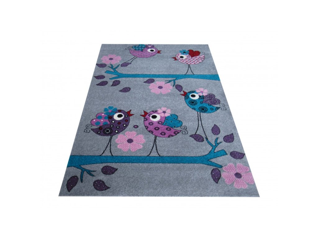 Ez a szürke szőnyeg kismadarakkal tökéletes választás minden gyerekszobába. Minőségi alapanyagokból készült, melyeknek köszönhetően ellenáll mindenféle deformációnak és elszíneződésnek. A szálak hosszának (13 mm) köszönhetően hihetetlenül puha és kellemes tapintású. A szőnyeg minden higiéniai követelménynek megfelel és nem tartalmaz semmiféle egészségre káros anyagot a 455/AC 017 számú tanúsítványnak megfelelve. Tökéletes gyerekszobába vagy ifjúsági szobába.