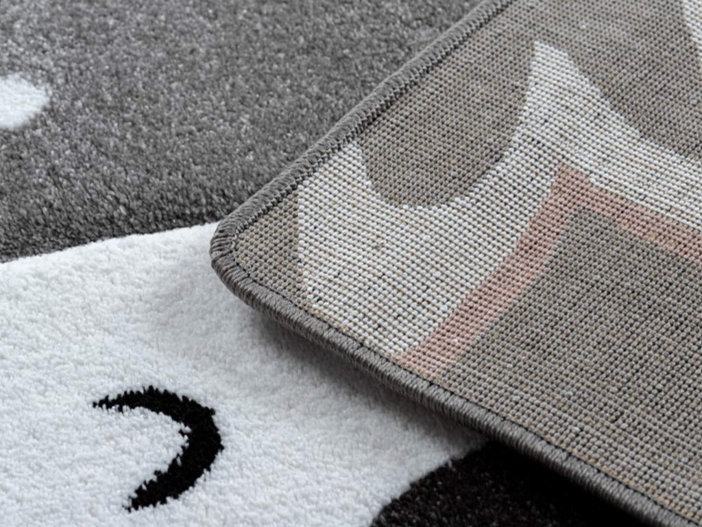 Éppen a gyerekszoba berendezésén fáradozik és egy pihe-puha gyerekszőnyeget keres? Akkor figyelmébe ajánljuk ezt az édes szürke pöttyös láma mintás gyerekszőnyeget, amely feldob minden gyerekszobát. A 2500 g/m2 szálsűrűséggel és 13 mm szálhosszúsággal rendelkező szőnyeg tökéletes választás. A polipropilén (PP) szálaknak rendkívüli a puhasága és a rugalmassága, főként a hőkezelésnek köszönhetően. Nem deformálódik és nagyon ellenálló a kikopással szemben. A legnagyobb előnye a könnyű tisztíthatóság és a közepes szálhosszúság. Több méretben is elérhető.