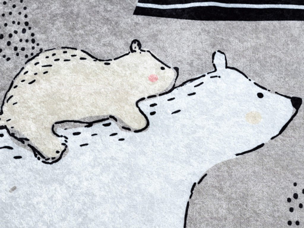 Egy új gyerekszőnyeg vásárlásán gondolkodik? Ez az aranyos gyerekszőnyeg, amely a medvemamát ábrázolja a bocsával egy aranyos és praktikus kiegészítő lehet a gyerekei szobájában. Gyermekei biztosan imádni fogják. A szőnyeg nem csak kényelmes helyet biztosít a játékhoz, de megvédi őket a hideg padlótól is. A szőnyeg 100 % poliészterből készül, amely allergiások számára is megfelelő. A rövidszálú szőnyegek nagy előnye, hogy igazán könnyen tisztíthatók. Amennyiben mégisbepiszkolódna mosógépben mosható 30°C fokon. A szőnyeg csúszásgátlós aljjal rendelkezik, amelynek köszönhetően stabilan hozzátapad a padlóhoz. A szőnyeg padlófűtéshez is megfelelő.