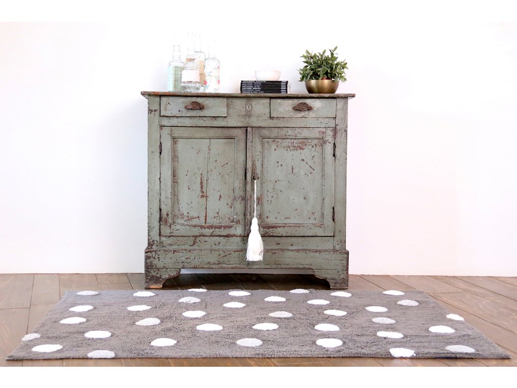 A TOPOS GREY szőnyeg igen elegáns és egyben játékos a pöttyeinek köszönhetően. Ez a kézzel készült szőnyeg nem csak a dizájnjával, de a kidolgozottságával és az összetételével is lenyűgözi majd. A szőnyeg 100 % pamutból készült. A szőnyeg megfelelő választás nem csak a gyerekszobába, de a nappaliba vagy a hálószobába is. A modern kinézetén kívül nagyon praktikus is, ugyanis könnyen tisztán tartható és mosógépben mosható.