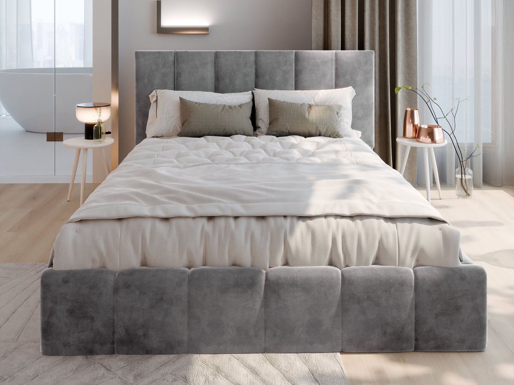 TARANTO kárpitozott franciaágy ágyneműtartóval 160x200 - szürke