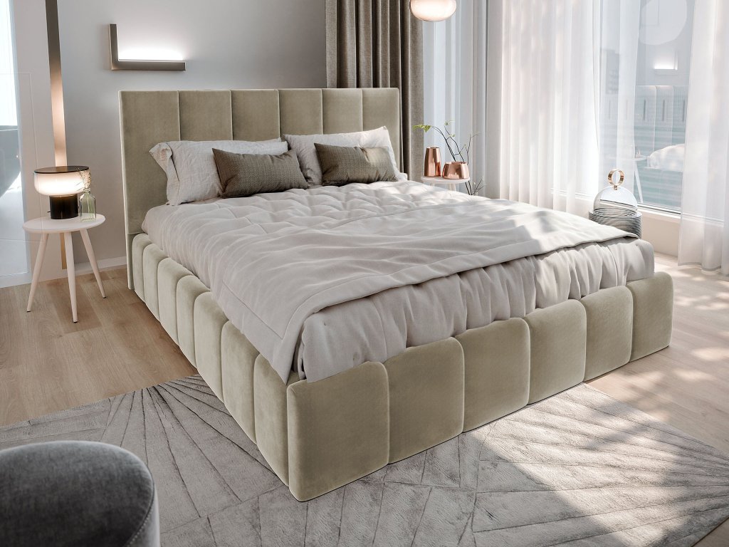 TARANTO kárpitozott franciaágy ágyneműtartóval 180x200 - krémszínű