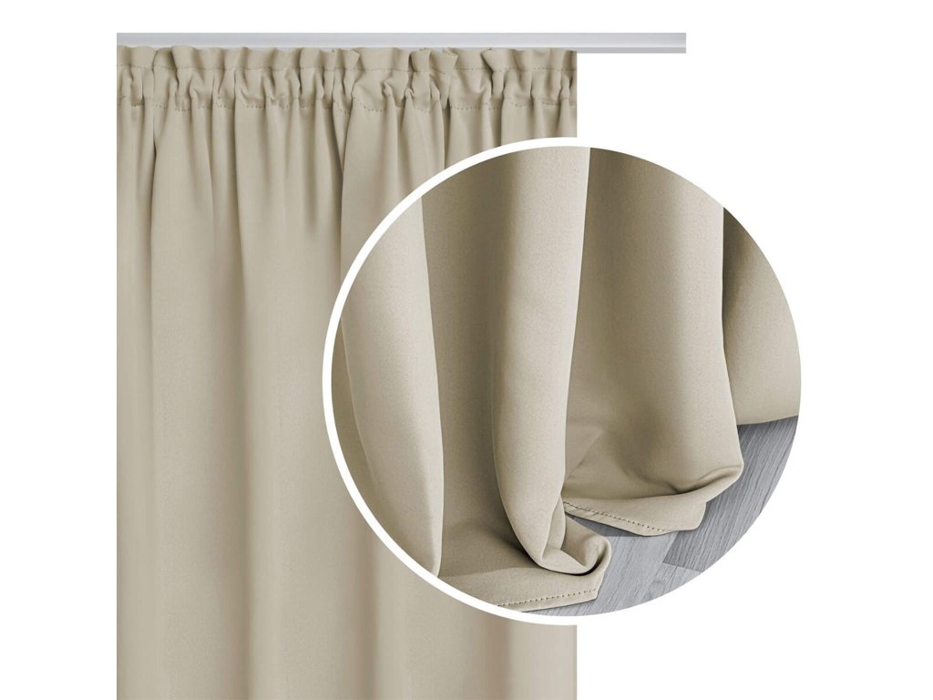 TÁSA bézs színű sötétítő függöny, amely 270 cm magas és 140 cm széles, így szinte minden helységbe megfelelő. A sötétítő függöny tökéletes olyan szobákba, ahová sokat süt a nap. A drapéria remekül mutat a nappaliban vagy a hálószobában is a semleges színének köszönhetően. A drapéria nem engedi be a fényt a szobába sem éjjel, sem nappal. Sima, matt anyagból készülnek egy vastag fekete közepesen vastag textilanyag felhasználásával. A függöny remekül mutat minden szobában, legyen szó modern vagy klasszikus berendezésűről. Számos színben elérhető. A 80 %-os sötétítésnek köszönhetően remek választást jelentenek a nappaliba vagy a hálószobába.