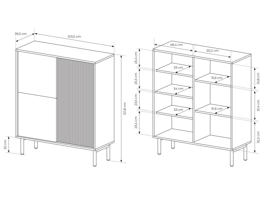 - Méret (SzéxMaxMé): 103,5 x 121,8 x 39,5 cm