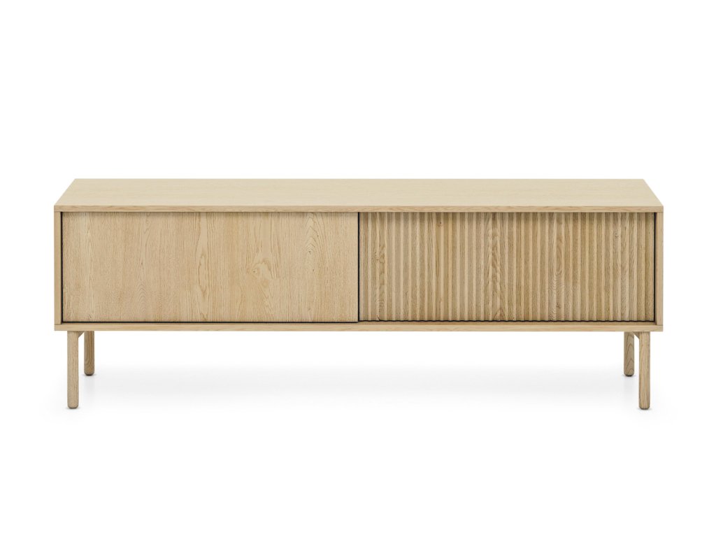 A 153 cm széles TAVO tévés szekrény egyszerre mutatós és rendkívül praktikus bútordarab. Magas tömör fa lábakon áll, amelyek elegáns megjelenést kölcsönöznek a bútornak, és egyben megkönnyítik a bútor alatti takarítást is. Az MDF-ből készült előlapok a minőségi ABS élekkel kiegészülve stabil szerkezetet és hosszú élettartamot garntálnak.