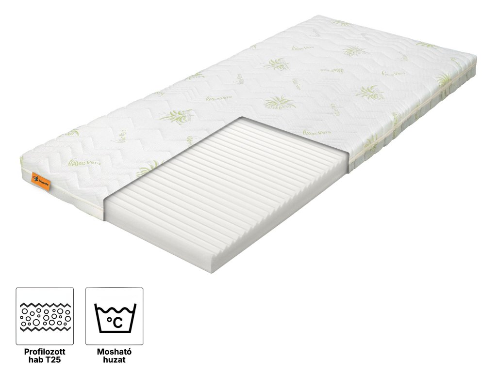 Anyagösszetétel: profilozott T25 poliuretán hab, Aloe Vera huzat