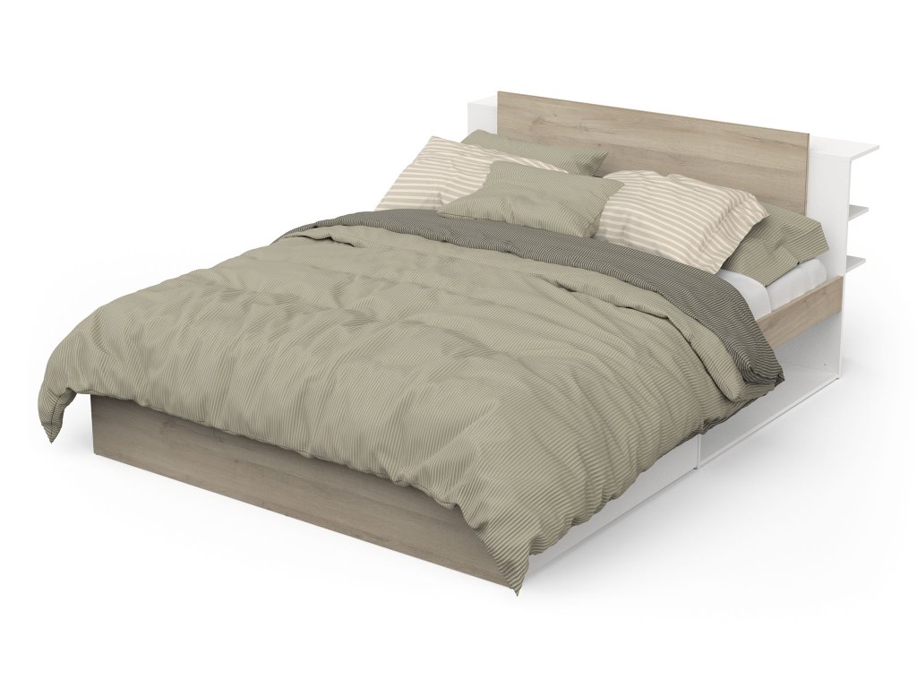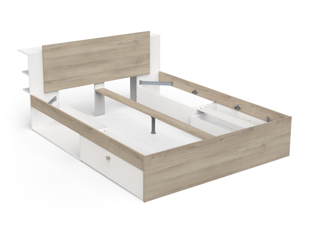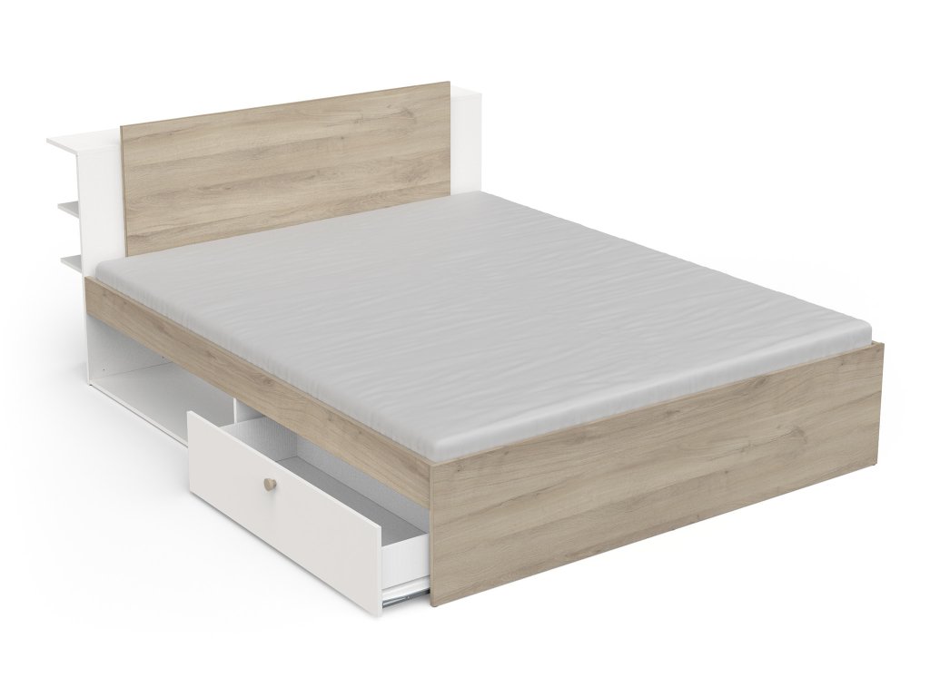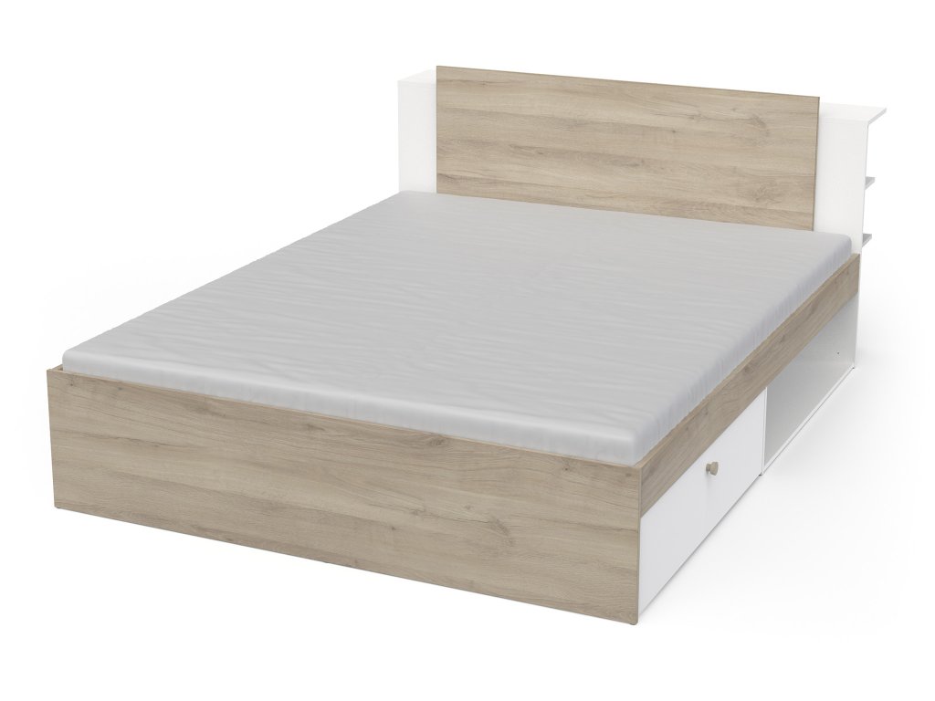 TEYA ágyneműtartós franciaágy 160x200 - fehér/tölgy