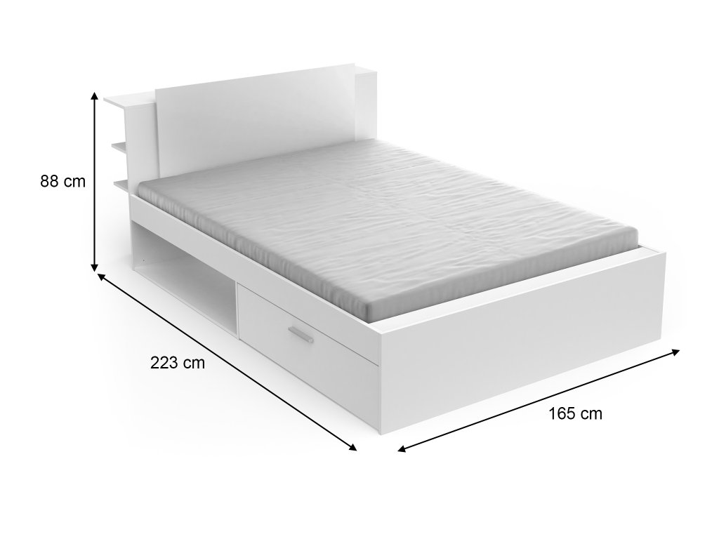 Nemcsak minimalista megjelenésével hódít, hanem bőséges tárolóhelyével is: az alsó részben két tágas ágyneműtartó tároló fiók található, míg a háttámla praktikus beépített könyvespolccal rendelkezik. Tökéletes könyvek, dekorációk, az ébresztőóra vagy bármi más tárolására, amit szeretne a keze ügyében tudni. Az ágy 18 mm vastag, kiváló minőségű laminált bútorlapból készült, precíz felületkezeléssel és élzárással.