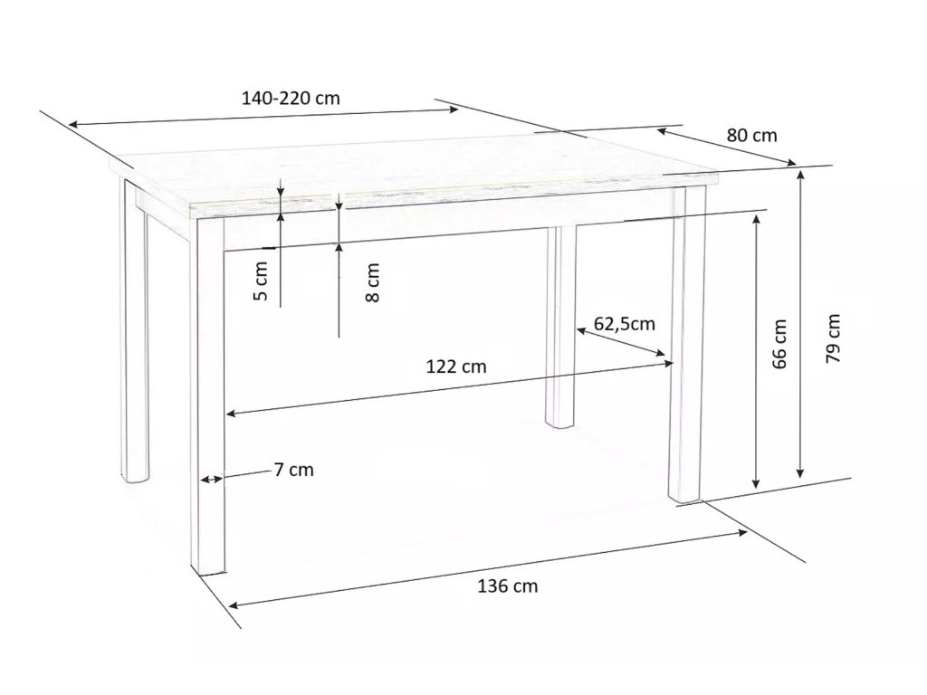 TIAGO 2 bővíthető étkezőasztal 140-220 x 80 - fehér
