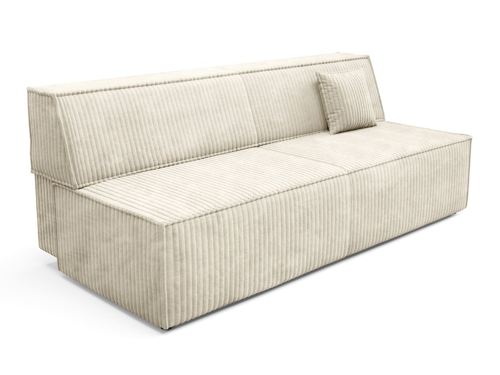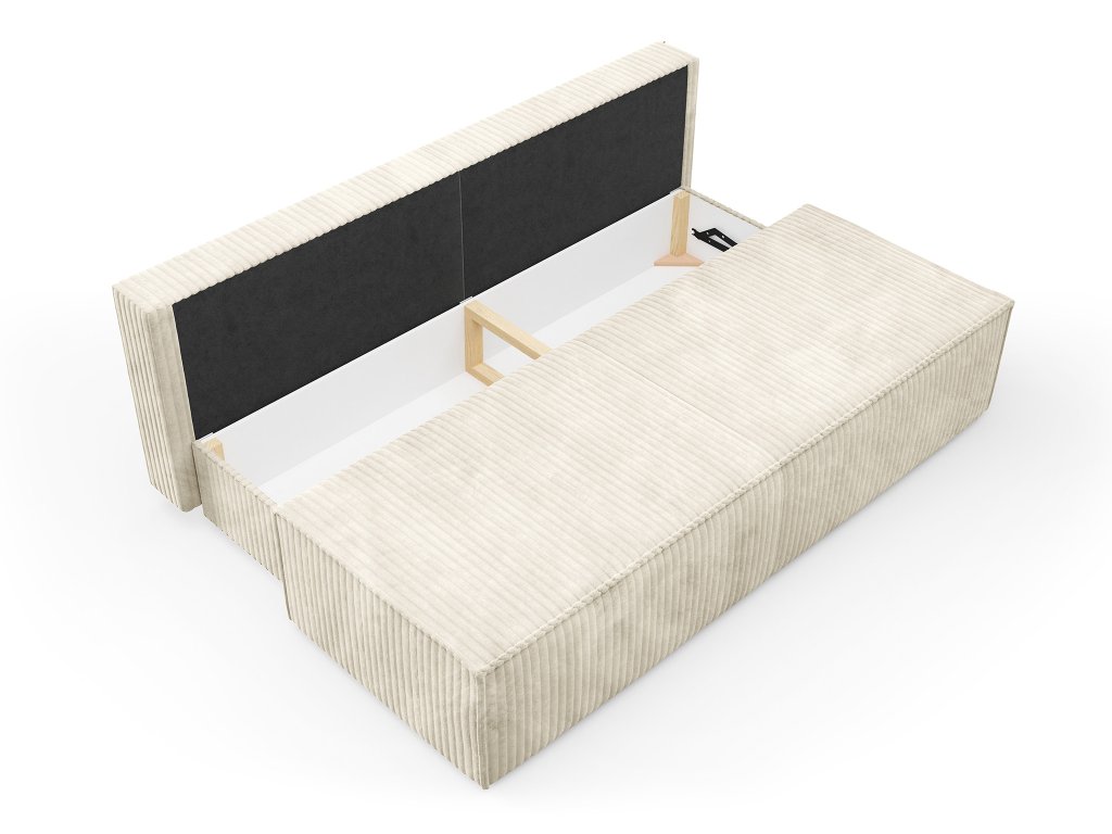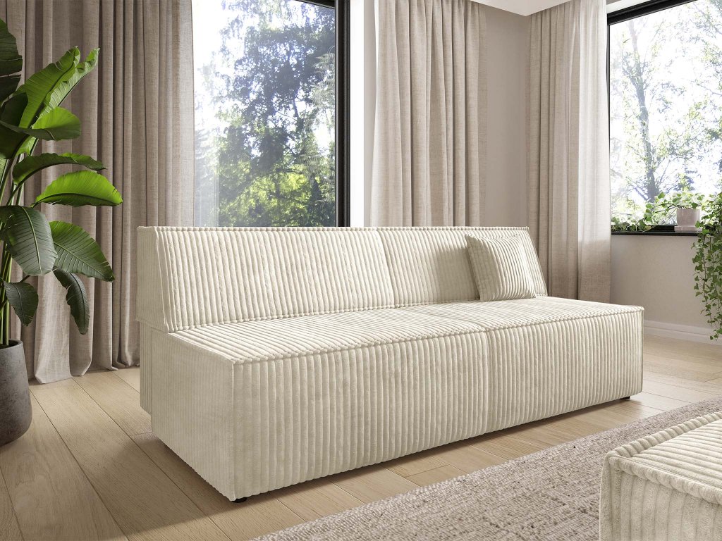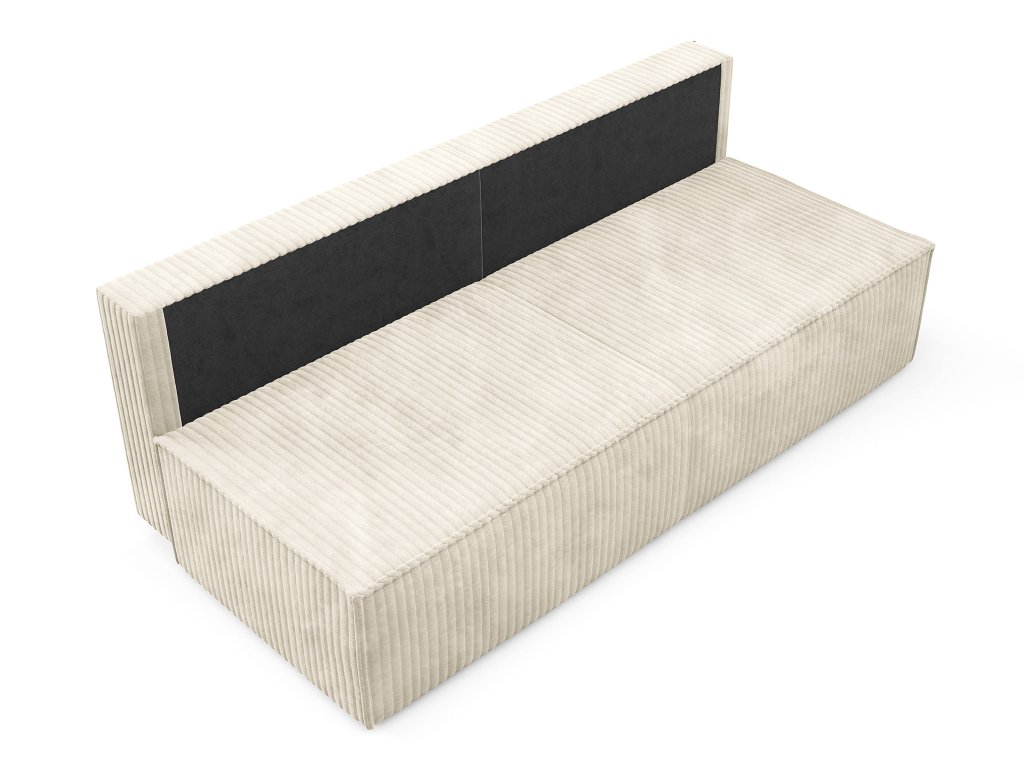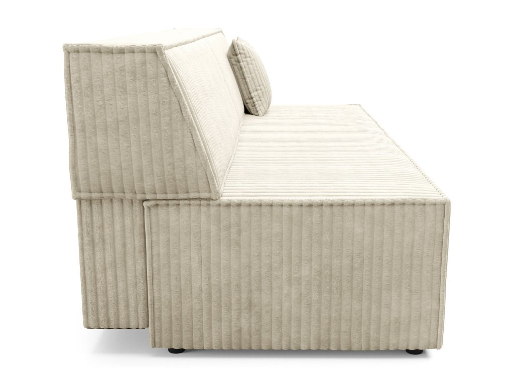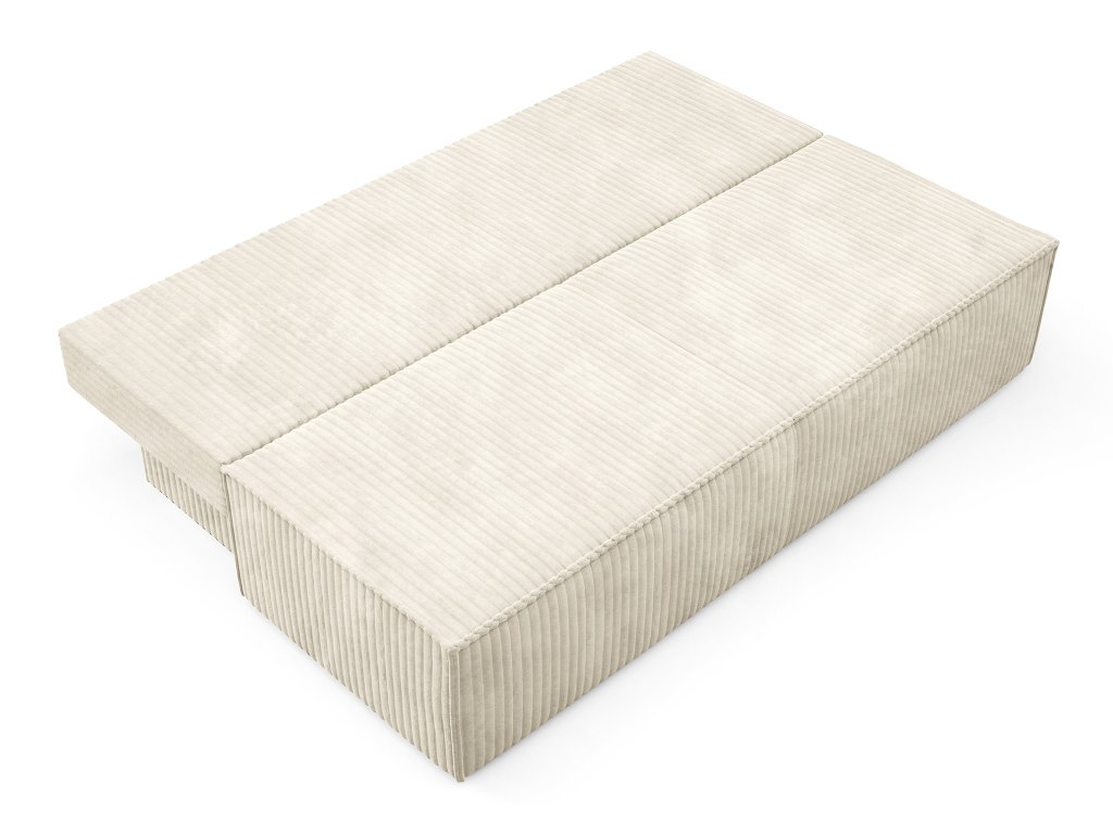 Garantálja a kényelmét a krémszínű TILIA kanapéágynak köszönhetően, amely tökéletes mindazoknak, akik multifunkciós bútordarabot keresnek az otthonukba. Az egyszerű szétnyitó mechanizmusnak köszönhetően a kanapé pillanatok alatt egy 140x200 cm méretű vendégággyá alakítható. Az ülőgarnitúra egy praktikus ágyneműtartóval is rendelkezik, amelybe elhelyezheti az ágyneműt, párnákat, plédeket. A levehető háttámla párnák és a díszpárna teszik tökéletessé az összhatást. A kihúzható kanapé modern megjelenését praktikus funkciókkal ötvözi, amelyeket értékelni fog a mindennapok során – akár a nappaliban, akár más helyiségben kap helyet. A kanapéágy szép csíkos TILIA kordbársony manchester szövettel kárpitozott. Ez az anyag igazán ellenálló a kikopással szemben, így hosszú élettartamot garantál. A karbantartás egyszerű, így a puff hosszú ideig megőrzi szép megjelenését. A kérmszínű bútor kellemes és időtálló hatást kelt, és remekül illik a fa bútorokhoz, a fekete fém elemekkel és a semleges kiegészítőkkel is. A kényelmes ülést és pihentető alvást a PUR hab biztosítja. Az ágyazható kanapé váza tömör borovi fenyő, forgácslap és rétegelt falemez kombinációjában készül.