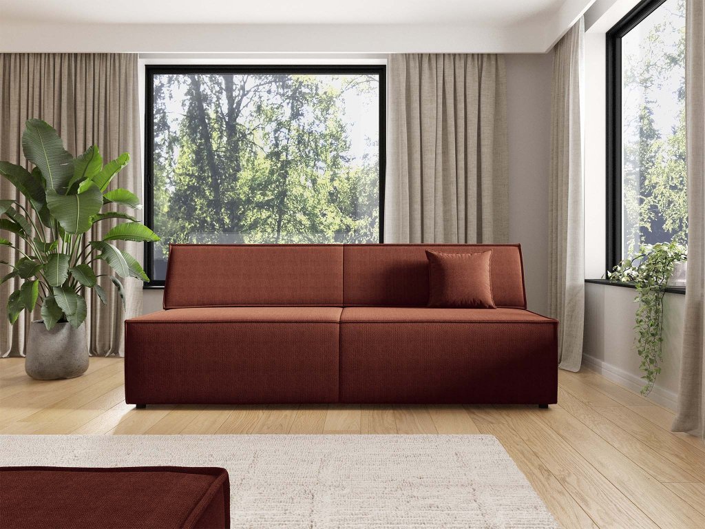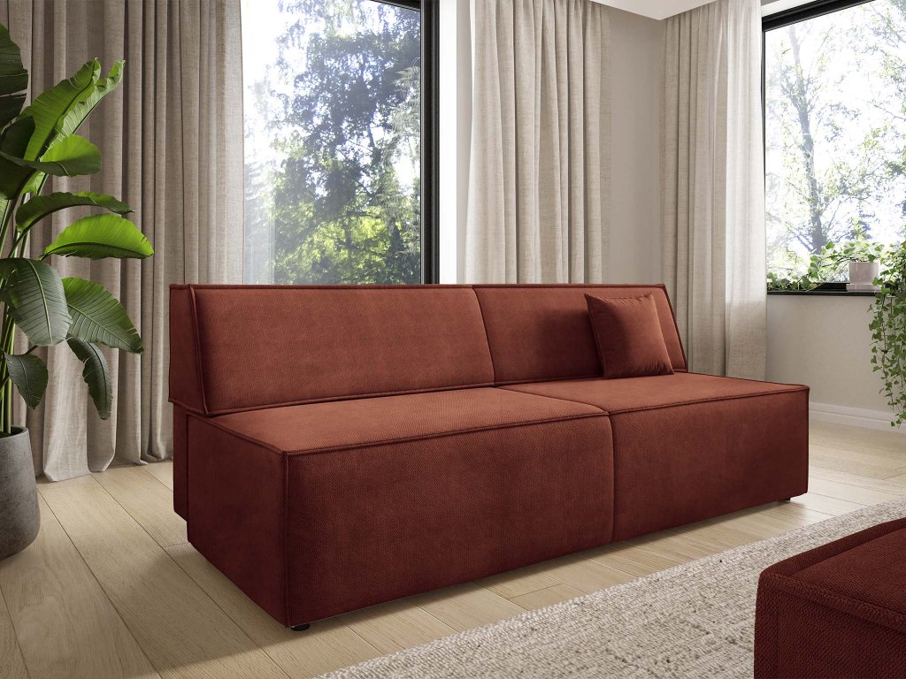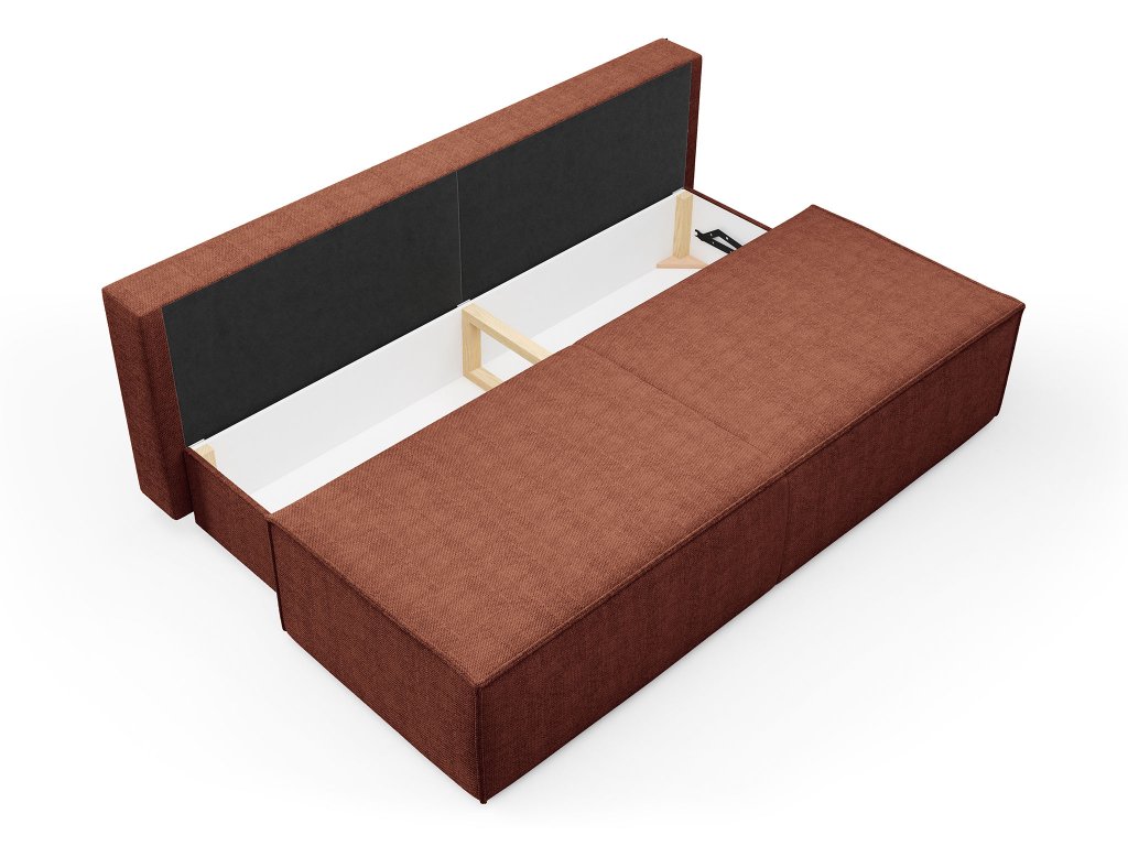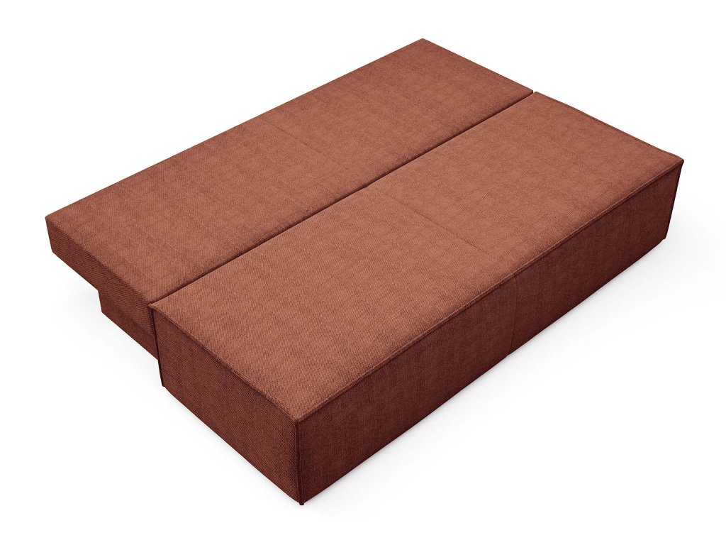 A téglavörös Dunbar szövettel kárpitozott minőségi TILIA kihúzható kanapé a modern megjelenését praktikus funkciókkal ötvözi, amelyeket értékelni fog a mindennapok során – akár a nappaliban, akár más helyiségben kap helyet. A kanapéágy Dunbar szövettel kárpitozott, amely egy kellemesen puha, kötött struktúrájú, strapabíró anyag finom textúrával, amely a mindennapos használat mellett is megőrzi gyönyörű megjelenését. A téglavörös árnyalat időtálló hatást kelt, és remekül illik a fa bútorokhoz, a fekete fém elemekkel és a semleges kiegészítőkkel is. A kényelmes ülést és pihentető alvást a PUR hab biztosítja. Az ágyazható kanapé váza tömör borovi fenyő, forgácslap és rétegelt falemez kombinációjában készül. Az egyszerű szétnyitó mechanizmusnak köszönhetően a kanapé pillanatok alatt egy 140x200 cm méretű vendégággyá alakítható. Az ülőgarnitúra egy praktikus ágyneműtartóval is rendelkezik, amelybe elhelyezheti az ágyneműt, párnákat, plédeket. A levehető háttámla párnák és a díszpárna teszik tökéletessé az összhatást.