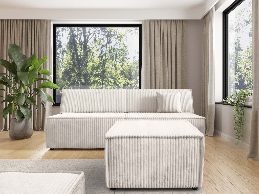 Gyönyörű fehér színű időtálló kocka formájú maxi méretű TILIA puff. Ez a zsámoly egy stílusos kiegészítő, amely extra ülőhelyként szolgálhat a nappaliban, a hálószobában vagy az előszobában. Az ottomán szép csíkos kordbársony manchester szövettel kárpitozott. Ez az anyag igazán ellenálló a kikopással szemben, így hosszú élettartamot garantál. A karbantartás egyszerű, így a puff hosszú ideig megőrzi szép megjelenését.