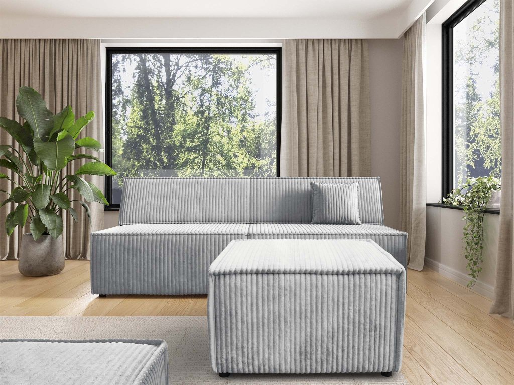Más bútorokkal is könnyen kombinálható ez a minőségi szürke kocka formájú maxi méretű TILIA puff. Ez a zsámoly egy stílusos kiegészítő, amely extra ülőhelyként szolgálhat a nappaliban, a hálószobában vagy az előszobában. Az ottomán szép csíkos kordbársony manchester szövettel kárpitozott. Ez az anyag igazán ellenálló a kikopással szemben, így hosszú élettartamot garantál. A karbantartás egyszerű, így a puff hosszú ideig megőrzi szép megjelenését.