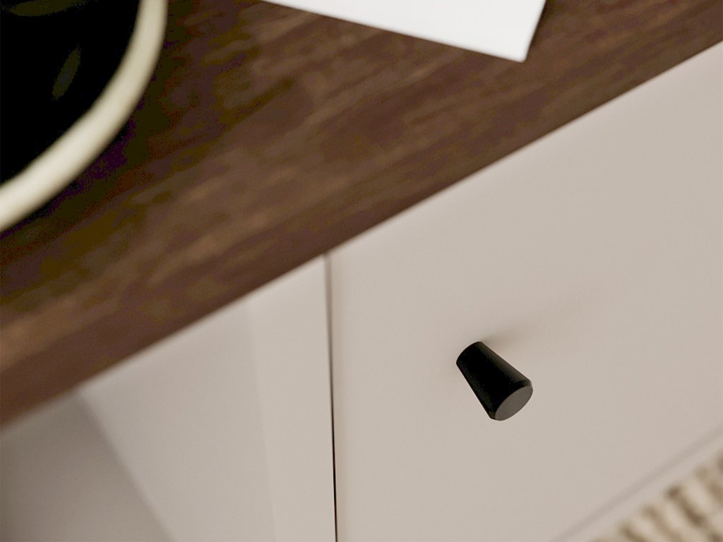 - Anyag: 16 mm laminált lap, PVC fóliával bevont MDF lap, fém fogantyúk és lábak