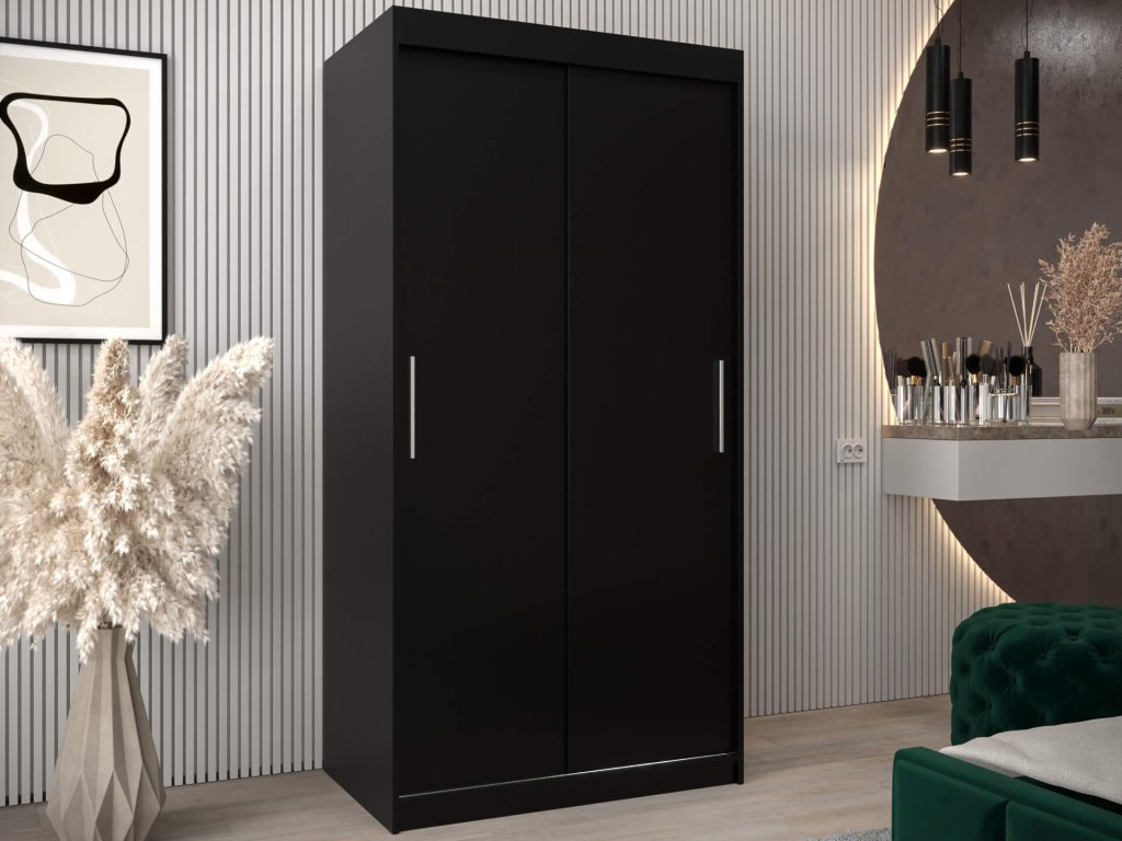 Modern Tokyo 100/120 gardróbszekrény, amely a fekete színének köszönhetően igazán elegáns hatást kelt