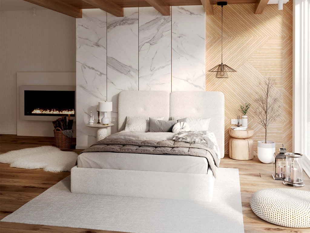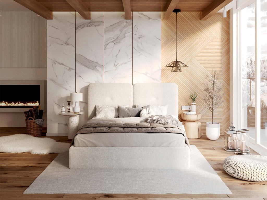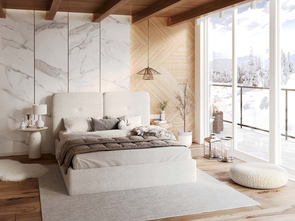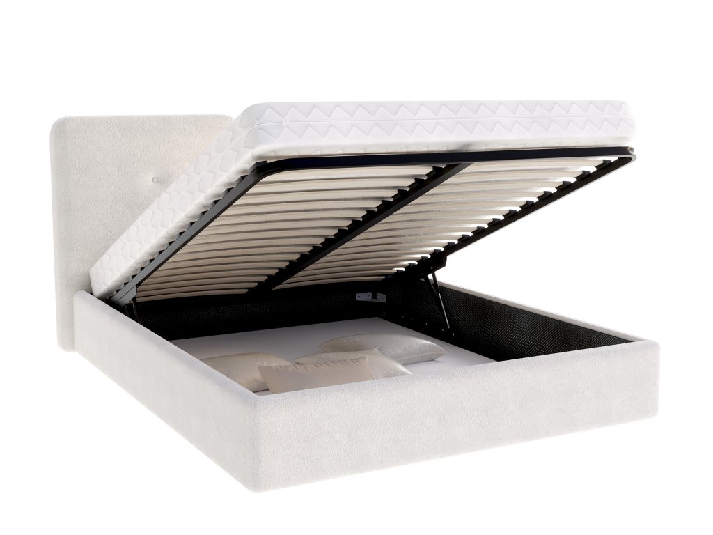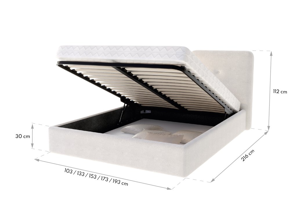 TORBE kárpitozott franciaágy ágyneműtartóval - fehér