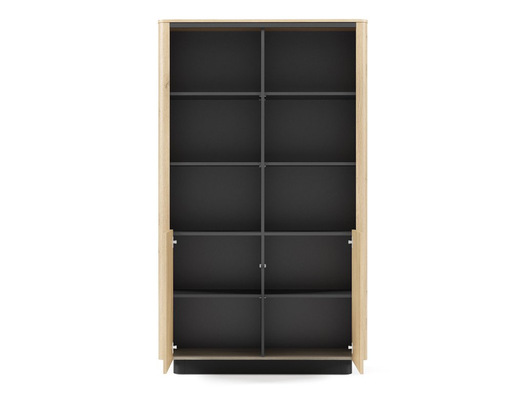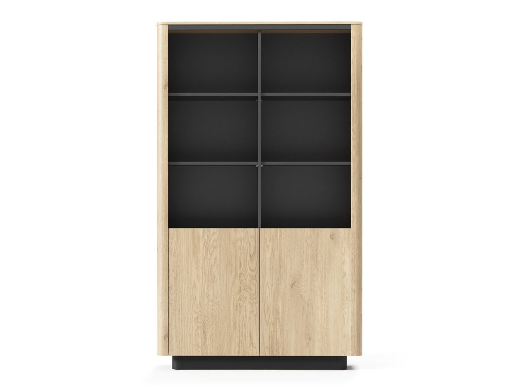 A TORRO 2D polcos szekrény az egyszerű, letisztult megjelenést ötvözi a jól átgondolt tároló megoldásokkal. A felső nyitott polcok tökéletes könyvescpolcként szolgálhatnak, de dekorációk vagy kisebb növények elhelyezésére is megfelelőek. A szekrény alsó részében egy kétszárnyú ajtós kis szekrény kapott helyet, amely helyet biztosít az iratoknak, textíliáknak vagy egyéb tárgyaknak. A push-to-open nyitórendszernek köszönhetően a szekrény elegáns és letisztult benyomást kelt. A finoman lekerekített élek és a fekete talapzat tovább erősítik a bútor enyhén lágy, modern karakterét, amely remekül illik a Japandi stílusú és a minimalista enteriőrökbe.