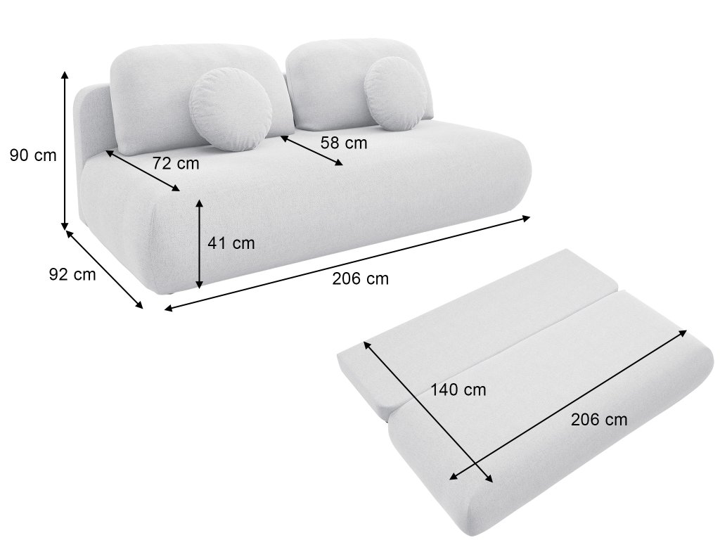 - Fekhely mérete szétnyitás után: 206 x 140 cm