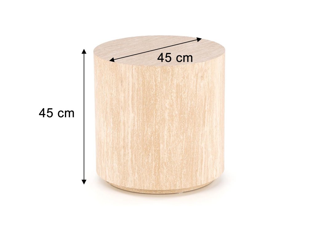 Modern henger formájú minimalista stílusú TRAVERTINO dohányzóasztal, amely egy stílusos kiegészítő lehet minden otthonba. Igazán szofisztikált kinézettel rendelkezik. Az asztal esztétikus designnal és praktikus funkciókkal is biztosított. A formájának és a felszínének köszönhetően ellenálló és könnyen tisztán tartható. Stílusos és gyönyörű Travertíno színárnyalatban készül. Igazán modern henger formája és nem mindennapi kinézete mindenkit elbűvöl majd.