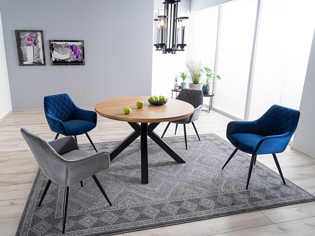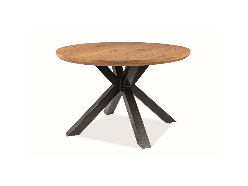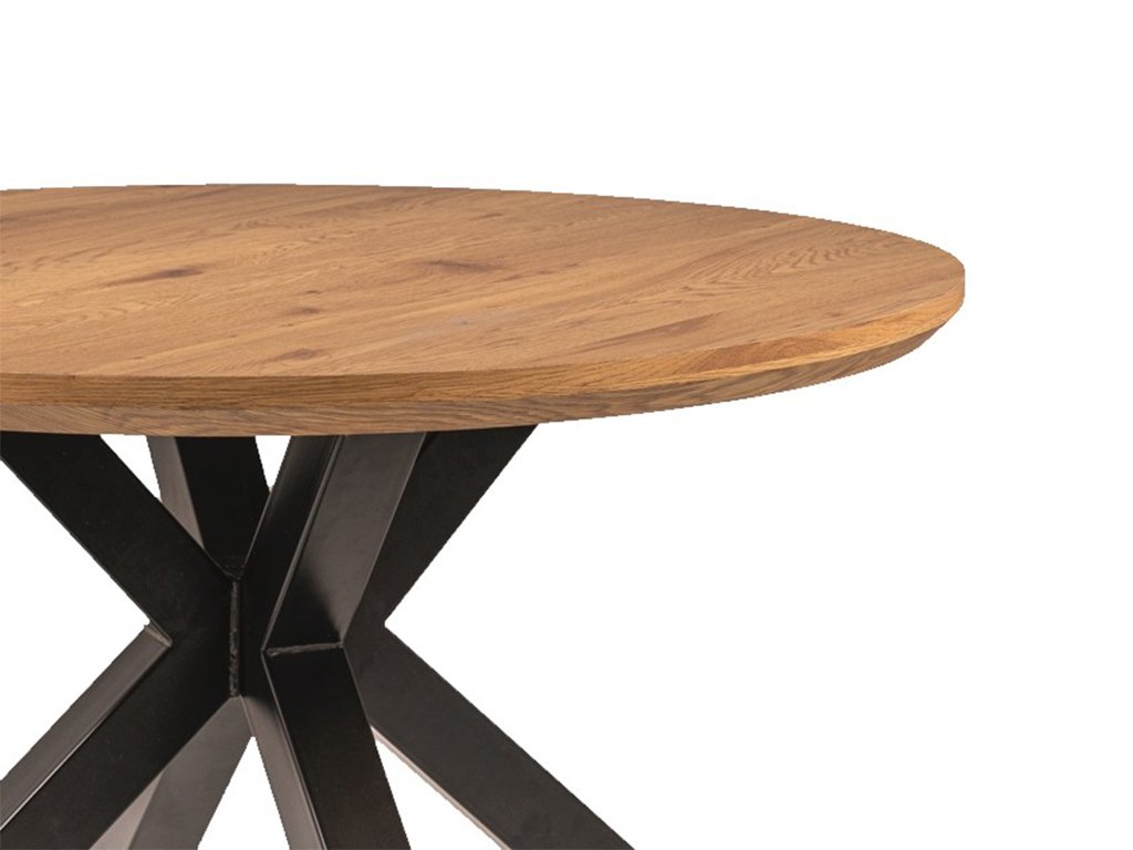 TRISTAN kerek étkezőasztal, amely a kör formájának köszönhetőenköszönhetően kisebb szobákba is tökéletes választás. Az étkezőasztal minőségi furnérozott MDF bútorlapból készült, amely gyönyörű és természetes hatást kelt. Érdekesen megoldott fekete fém lábainak köszönhetően még különlegesebb dizájnt kap. Az étkezőasztal biztosan feltűnő darab lesz a konyhájában vagy az étkezőben. Egészítse ki az asztalt egyedi székeinkkel.
