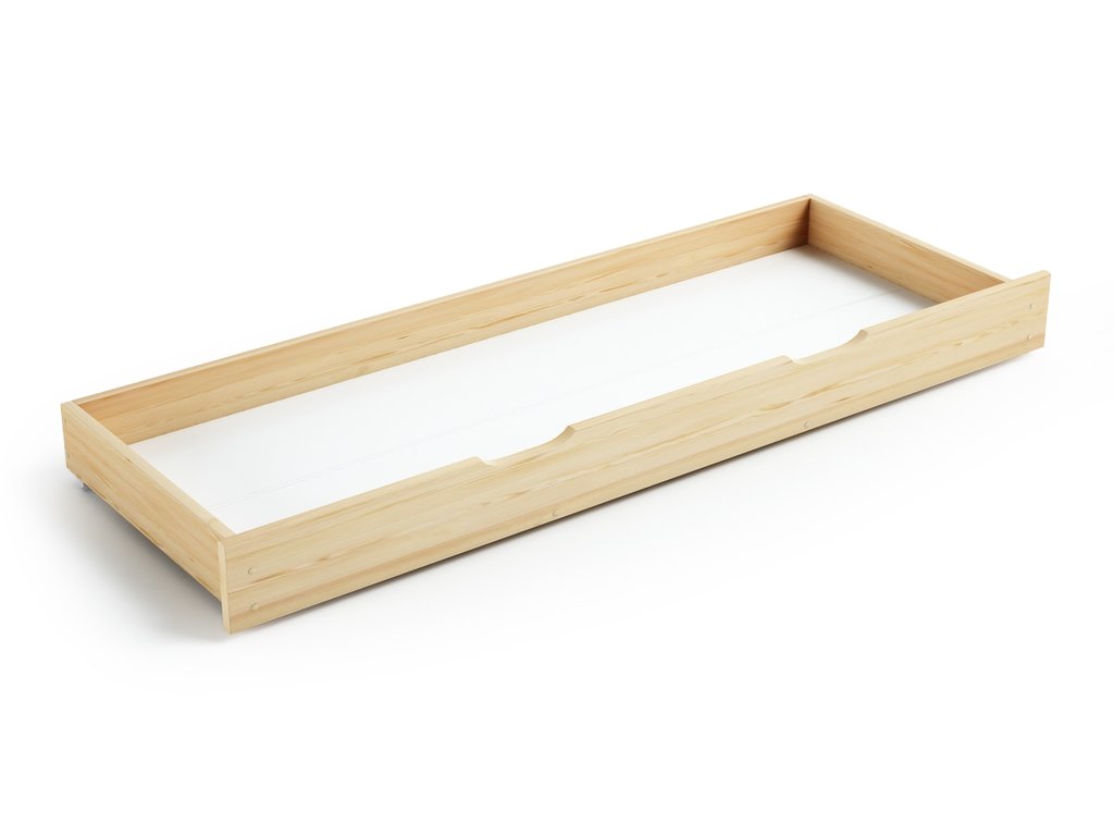 Tömör borovi fenyőből készült ágyneműtartó tároló fiók, amely igazán stabil és szép is. A natúr fa meleg hatású, és így jó választás lehet a gyerekszobába vagy akár a hálószobába is. Az ágyneműtartó fiók ideális játékok, ágyneműk vagy szezonális ruhák tárolására. Praktikusságát fokozza a négy kerék, amelyek lehetővé teszik a könnyű kezelhetőséget, a betolását és kihúzását még a gyermekek számára is. Univerzális méreteinek köszönhetően a legtöbb gyerekágy alá befér, így ügyesen kihasználja az egyébként kihasználatlan helyet. A masszív fából készült kialakítás hosszú élettartamot és tartósságot biztosít. A doboz felületét olyan módon kezelték, hogy az kellemes tapintású és ugyanakkor könnyen karbantartható legyen.