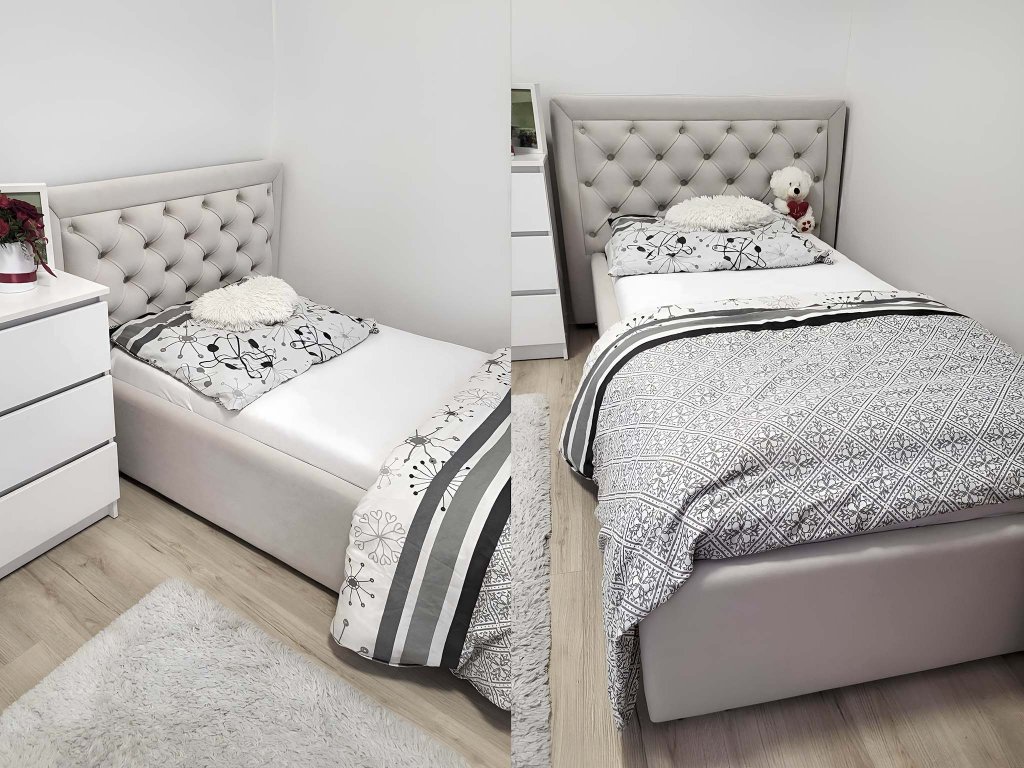 A VALERIE egyszemélyes ágy 90x200 cm már első látásra levesz mindenkit a lábáról a minőségi kidolgozásával. A kárpitozott ágy gyártásakor minőségi, szilárd és ellenálló anyagokat használtak fel. A minimalista stílusának köszönhetően tökéletes választás modern szobába. Az ágy magas puha Chesterfield típusú steppelt háttámlával rendelkezik, amely igazán szép, ráadásul praktikus is, mert olvasás közben megtámaszthatja nála a hátát. A gyerekágy négy praktikus lábbal is rendelkezik. A gyönyörű színeknek köszönhetően tökéletes választás minden gyerekszobába.