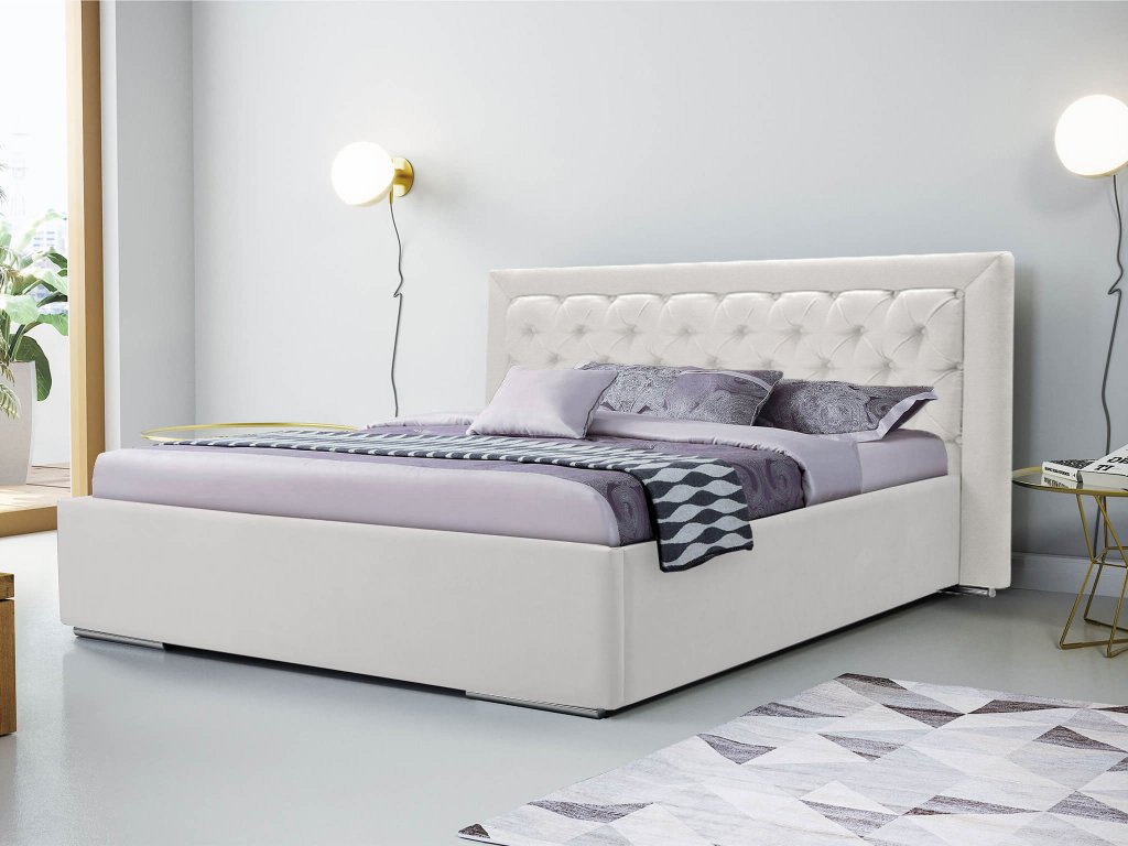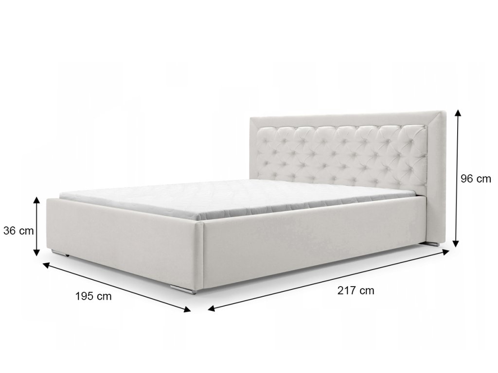 Elegáns és gyönyörű fehér (krémszín) VALERIE kárpitozott franciaágy 200x160 cm méretben, amely mindenkit elbűvöl a luxusos, modern kinézetével és a magas gyönyörű ágytámlájával. Az ágy gyártásához szilárd és ellenálló anyagokat választottak. A minimalista formához társul a gyönyörűen steppelt ágytámla, így tökéletes választás minden modern hálószobába. A magas puha háttámla Chesterfield stílusban steppelt és igazán praktikus lesz majd az esti olvasás vagy tévénézés közben, ugyanis kényelmesen neki tudja támasztani a hátát. A Velvet szövet, amellyel az egész ágy kárpitozott igazán kellemes tapintású. Az ágy rendelkezik négy darab lábbal is.
