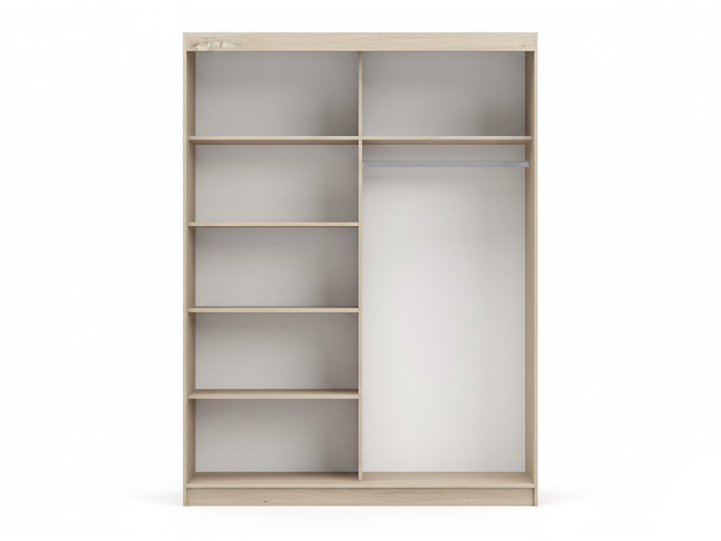 A szekrény artisan tölgy színét fehér és fekete részletekkel kombinálja, így egyszerre modern és visszafogott megjelenést kap. Az ajtók elejét finom, vízszintes díszlécek teszik egyedivé. Az egyik ajtón található nagy tükör pedig praktikus segítség, ha indulás előtt gyorsan szeretné ellenőrizni a megjelenését. Tágas belső kialakítása ellenére a szekrény kompakt hatást kelt, ezért kisebb helyiségekben is könnyen elfér.