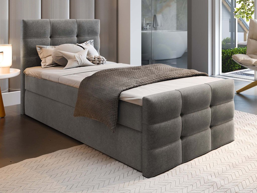 VAMON kárpitozott boxspring ágy 100x200 - szürke