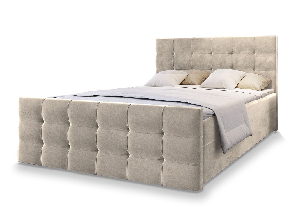VAMON kárpitozott boxspring franciaágy 140x200 – krémszínű